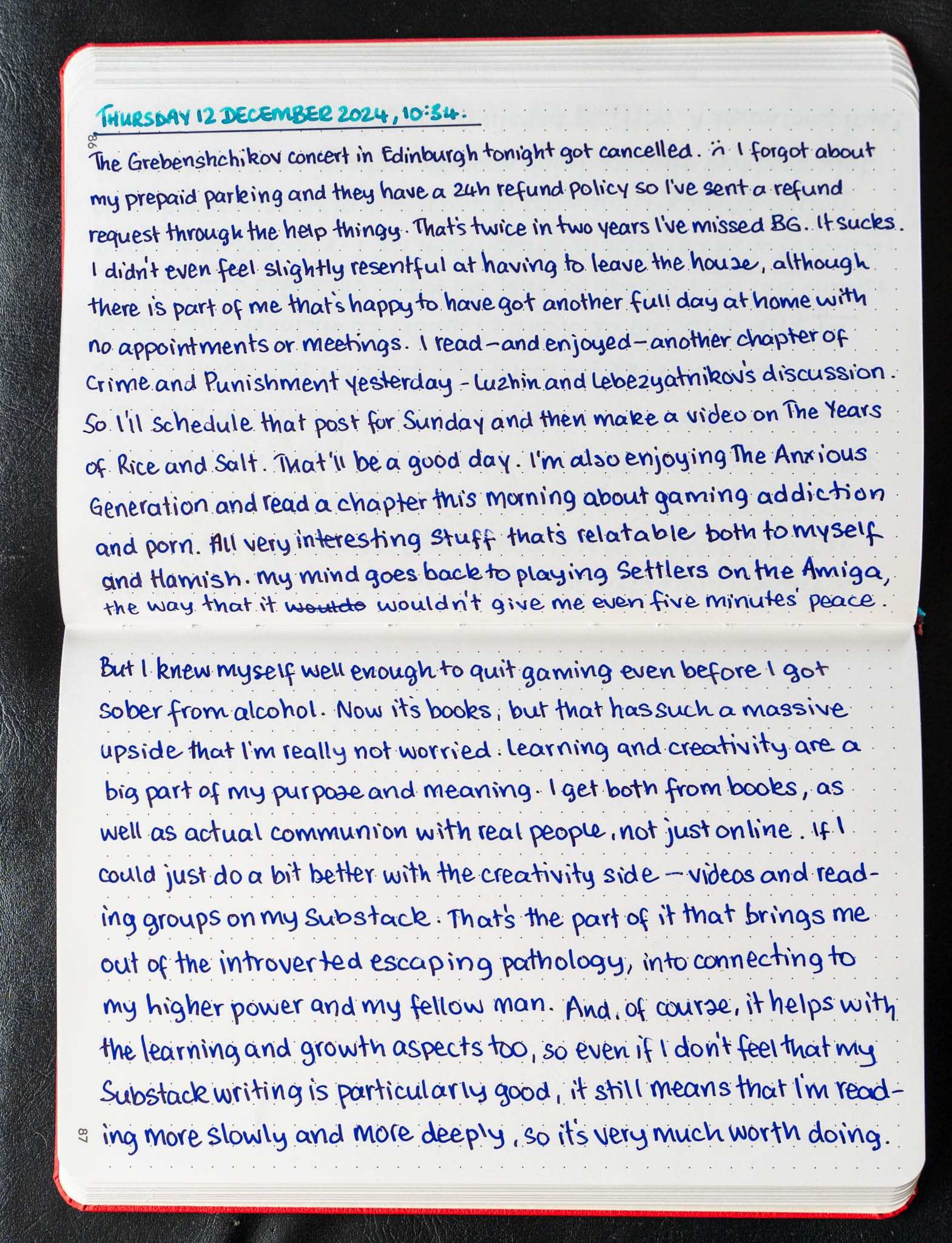 I'm at home instead of heading off to see Boris Grebeshchikov because it was cancelled just yesterday.