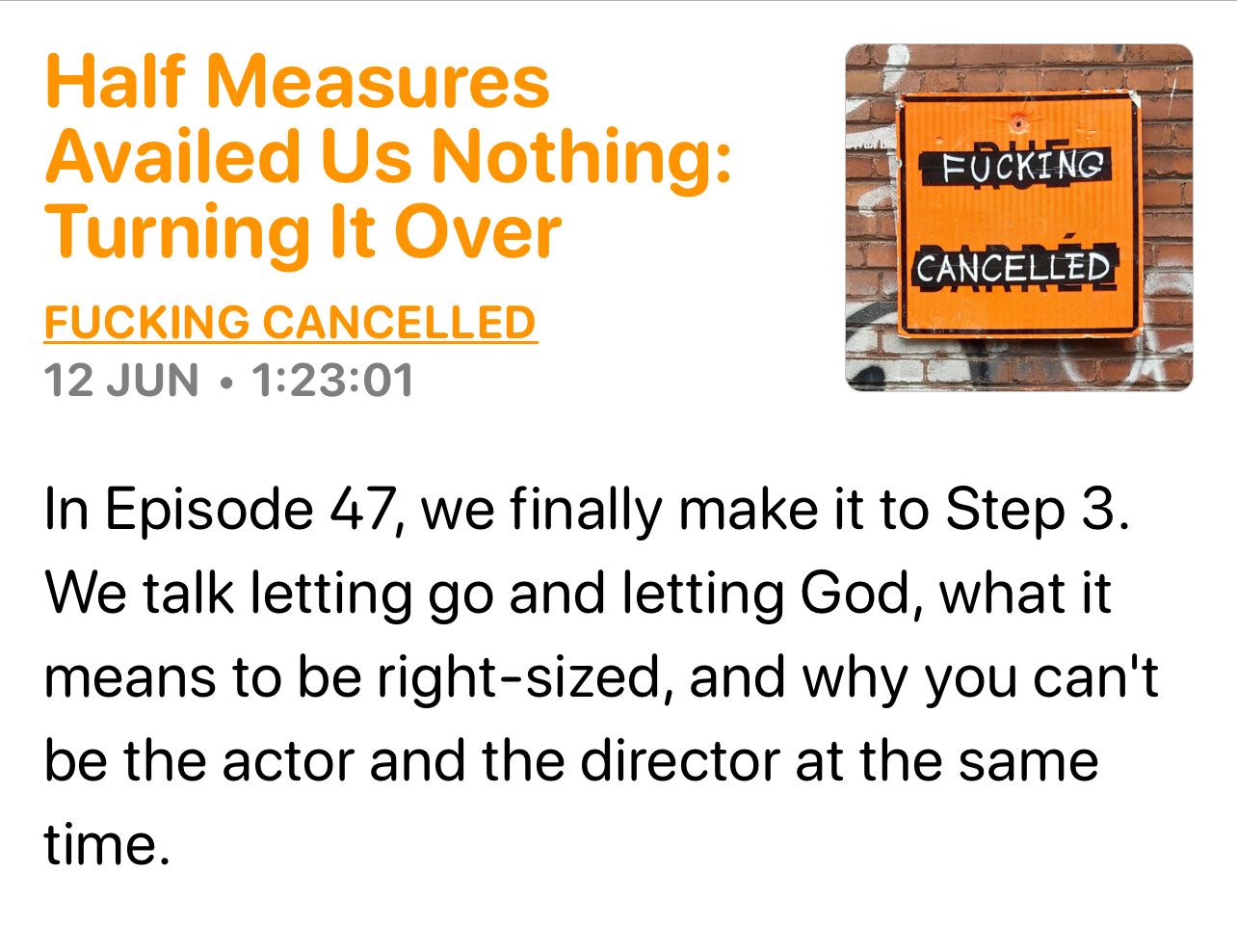 I didn't mention this in my pages, but one of my favourite podcasts is called Fucking Cancelled, hosted by @jaylesoleil and @clementinemorrigan. I don't vibe with all of their politics, but the way that they discussed the tenets of AA in their most recent episode was suberb - one of the best 12-step discussions I've heard. Check it out if you're in the programme or wonder what it's about, especially if you're struggling with 'the God thing'.