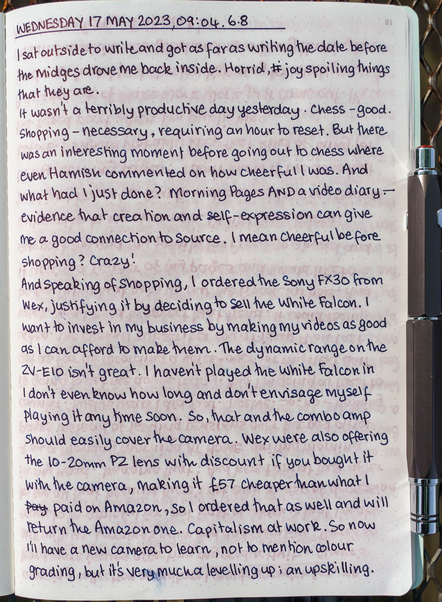 I started outside, but the midges chased me back in. Then the sun came out, so I had another go and it was okay. I love writing outside. The way the ink looks on the paper really stands out in direct sunlight like that. It's a beautiful thing. And Tomoe River? Yes, I love you!