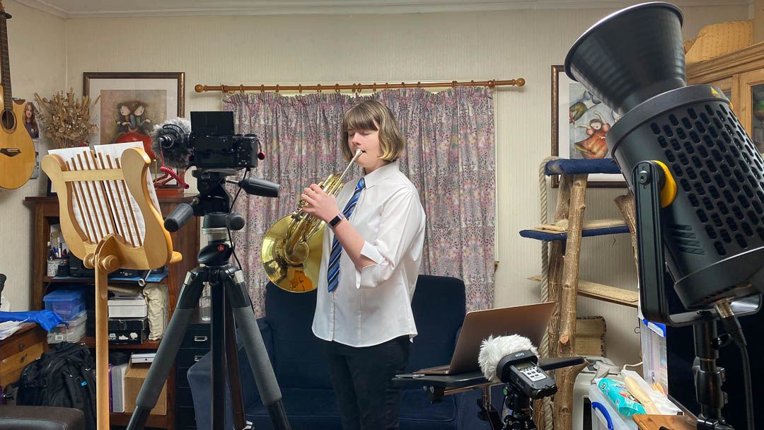 Freya came home with a French horn from school when she was still at primary school. When she was in her final year of primary, P7, she was already playing with the high-school brass and performed with them at the Christmas show. The music teacher, James O’Neil, was an incredible teacher and it’s really largely down to him that Freya was so excited about playing. When she started at high school we got her a used student horn and she got better and better, eventually auditioning for and getting a place with the county senior concert band on the mainland.