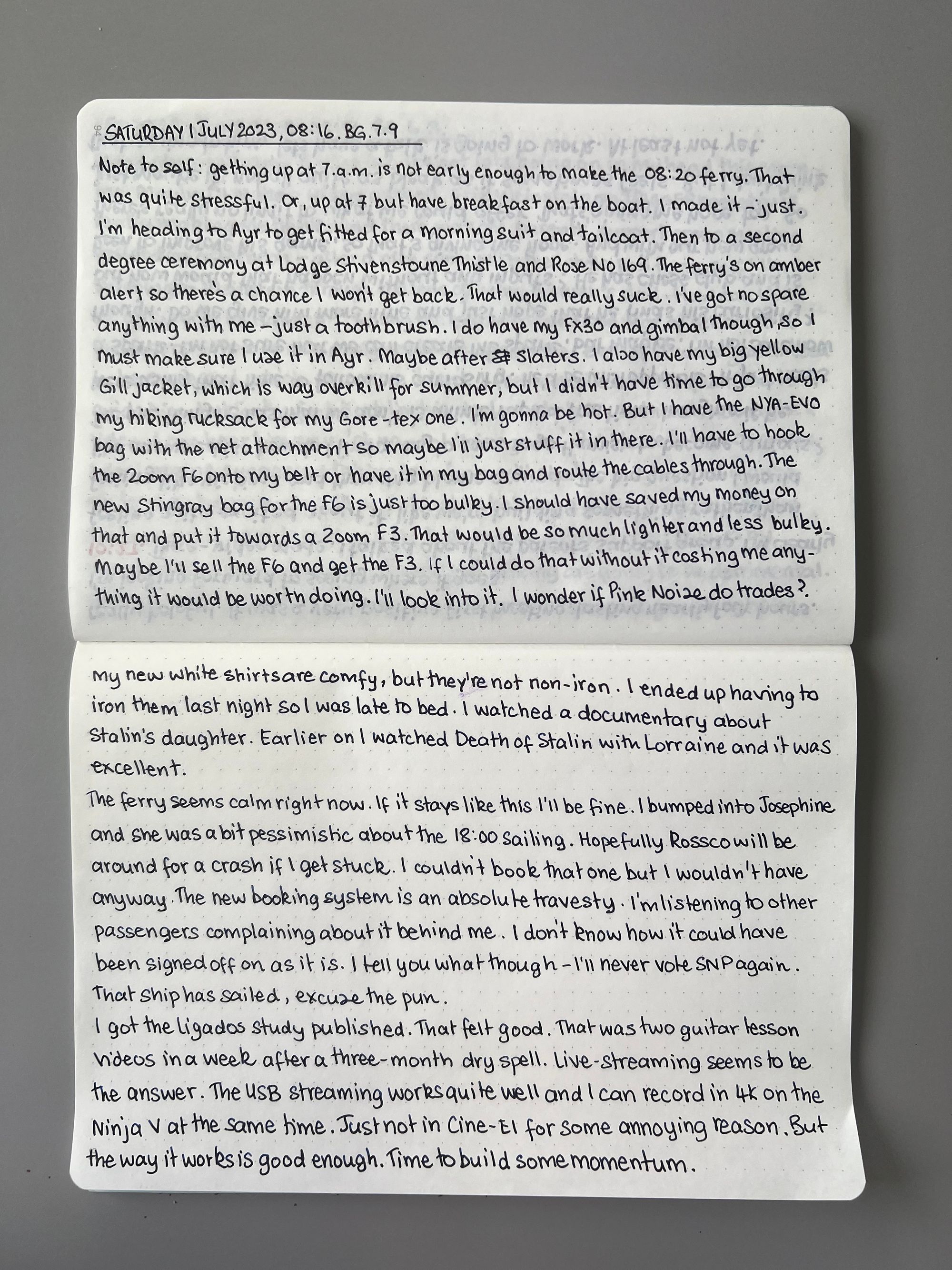 Jul 1, 2023 1 min read morning pages Morning Pages | 1 July 2023 Ferry travel. Will I get stuck? Cams Campbell I'm on the ferry this morning. Just made it by the skin of my teeth!