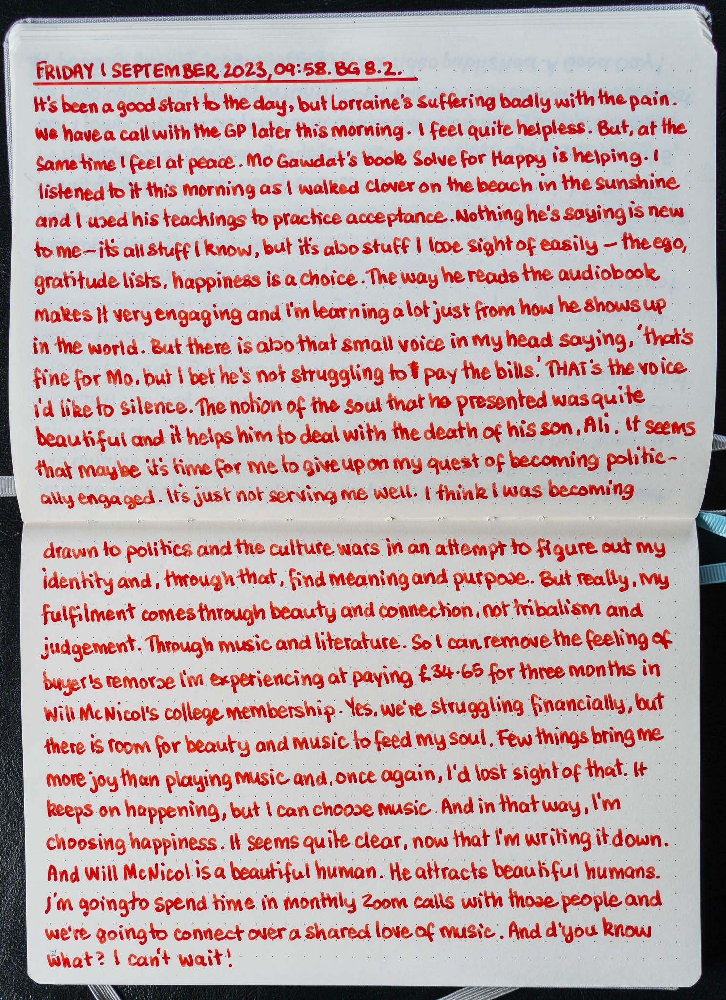 It's a Pelikan M600 day today to start the new month. August is done and I'm pretty glad to see the back of it, to be honest. But I will do a monthly review and look out for the positive things, the biggest of which was certainly getting to see our daughter's performing with the Caledonian Chamber Orchestra in Crieff—and getting home safely in a campervan with the engine warning light on.