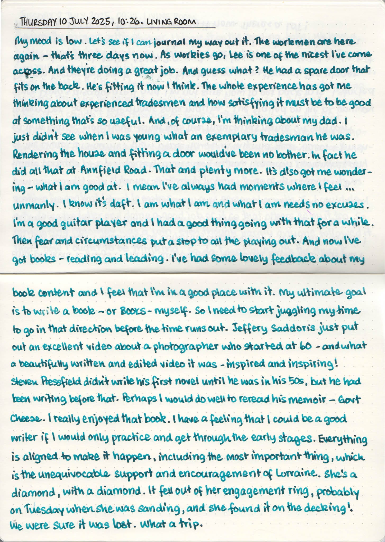 My mood was low and I almost didn't write because of distractions, including opening the home insurance renewal letter. Ugh. No wonder I was in a low mood. But the writing helped, as it almost always does.