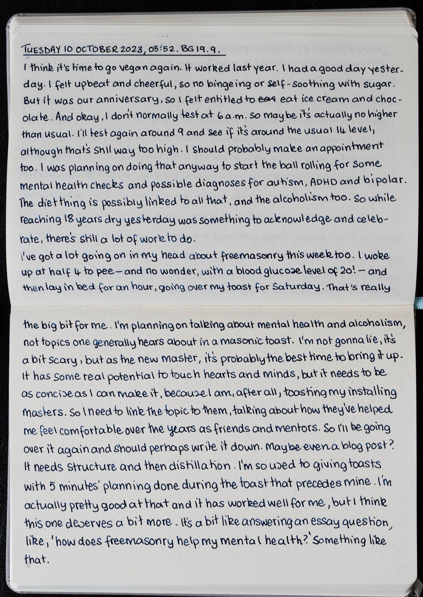 Written with a TWSBI Precision Fountain Pen Gunmetal with a Fine nib and Cult Pens Blue Black ink.