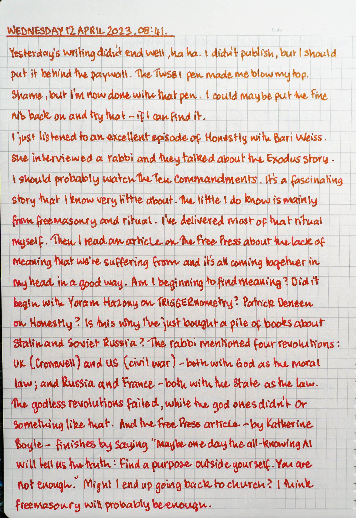 Apr 12, 2023 1 min read morning pages Morning Pages | 12 April 2023 "Find a purpose outside yourself. You are not enough." Cams Campbell LinksFree Press article by Katherine Boyle - Get Serious: About PurposeRabbi Meir Soloviechik on Honestly - Our Favorite Passover ConversationFreya with the North Ayrshire Senior Concert Band