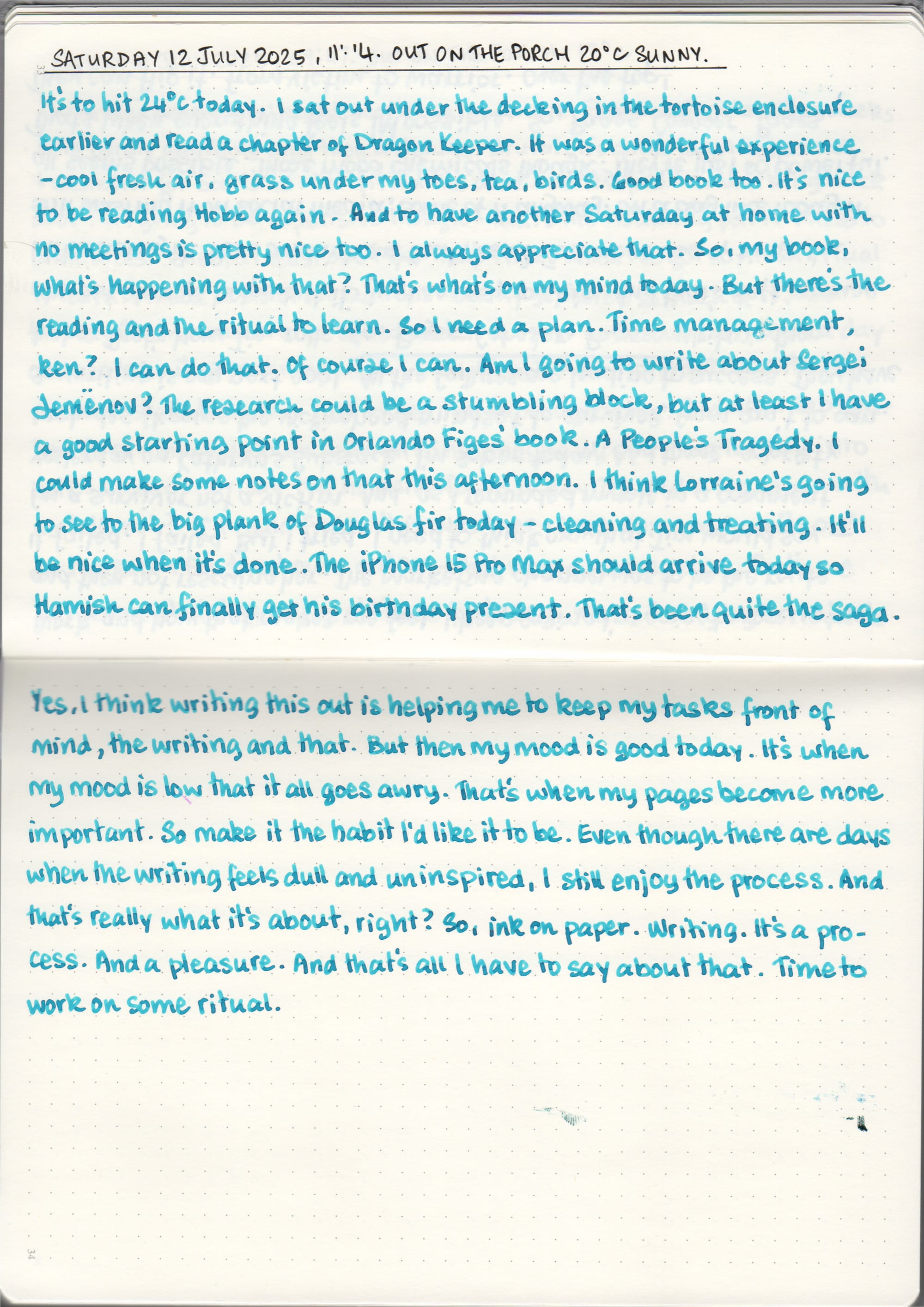 Jul 12, 2025 1 min read morning pages Morning Pages | 12 July 2025 Make it the habit I'd like it to be Cams Campbell Some days the writing isn't great, but it's still very worthwhile... and enjoyable. Pelikan M600 Broad with Edelstein Apatite