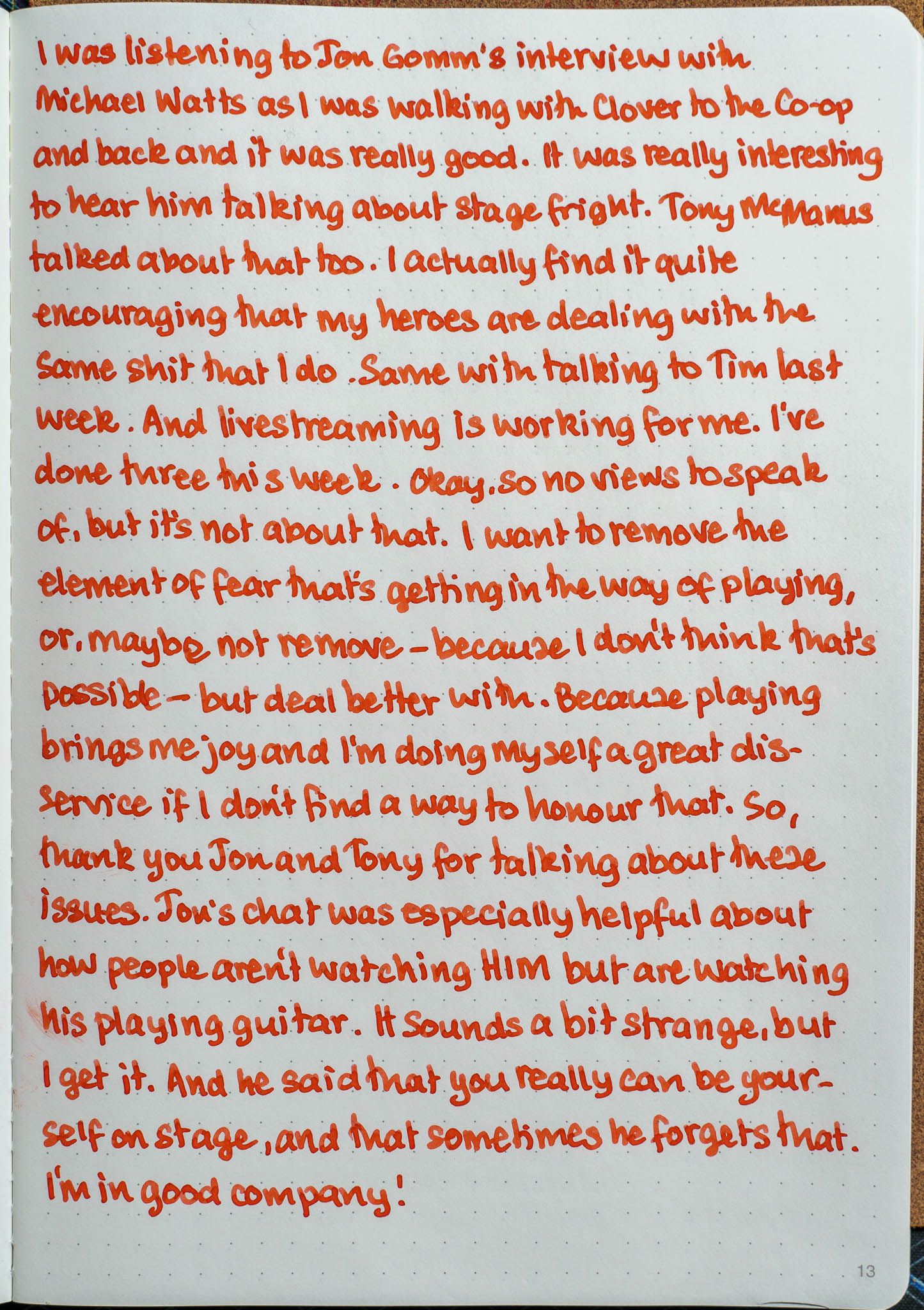 May 12, 2023 1 min read morning pages Morning Pages | 12 May 2023 Again with the insomnia. Ugh. Cams Campbell LinksLife on the Fretboard - Tony McManusLife on the Fretboard - Jon Gomm