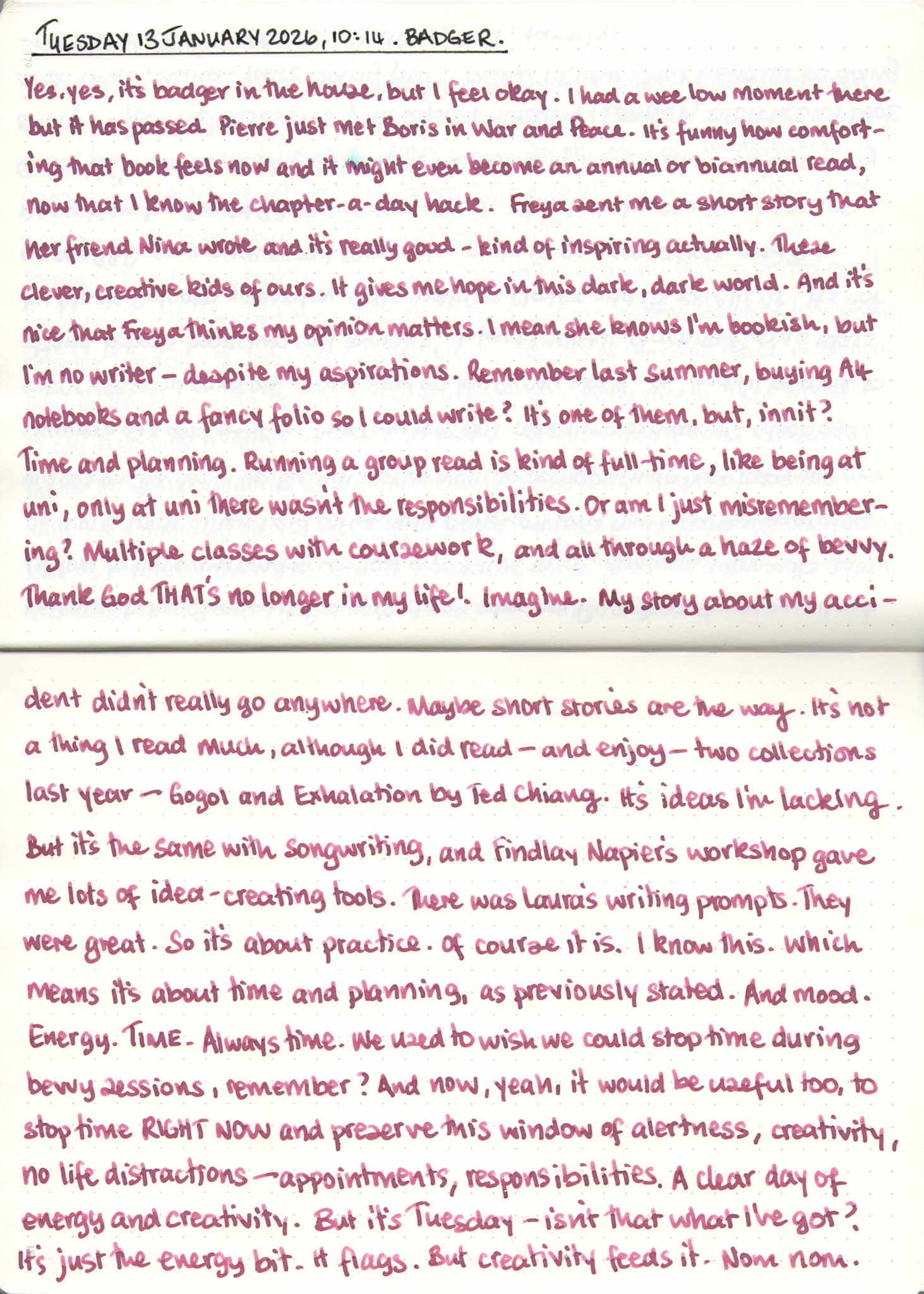 Jan 13, 2026 1 min read Morning Pages | 13 January 2026 Cams Campbell Pelikan M600 Broad with Diamine Pink Glitz