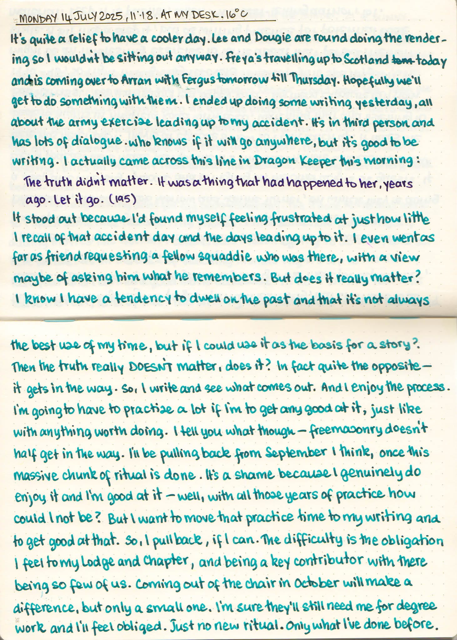 Jul 14, 2025 1 min read Morning Pages | 14 July 2025 Does the past really matter? Cams Campbell Waldmann Edelfeder Broad with Diamine Aurora BorealisLinksDragon Keeper, Robin Hobb