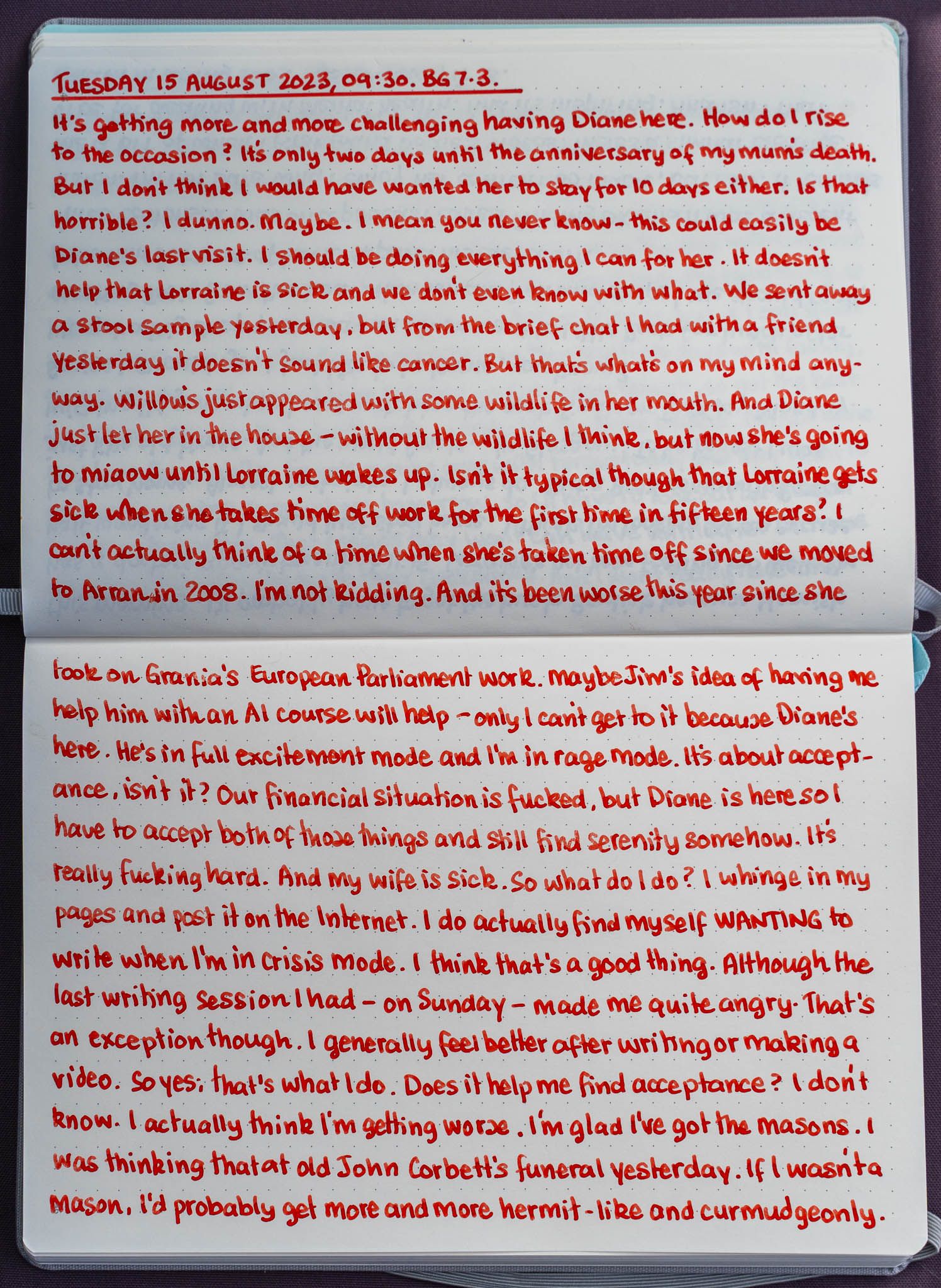 This is how I free my mind of some negative thoughts that are dragging me down. I do it in the sunshine, with a beautiful fountain pen and ink combo and some coffee. And do I feel better for having done it? You bet your arse I do!