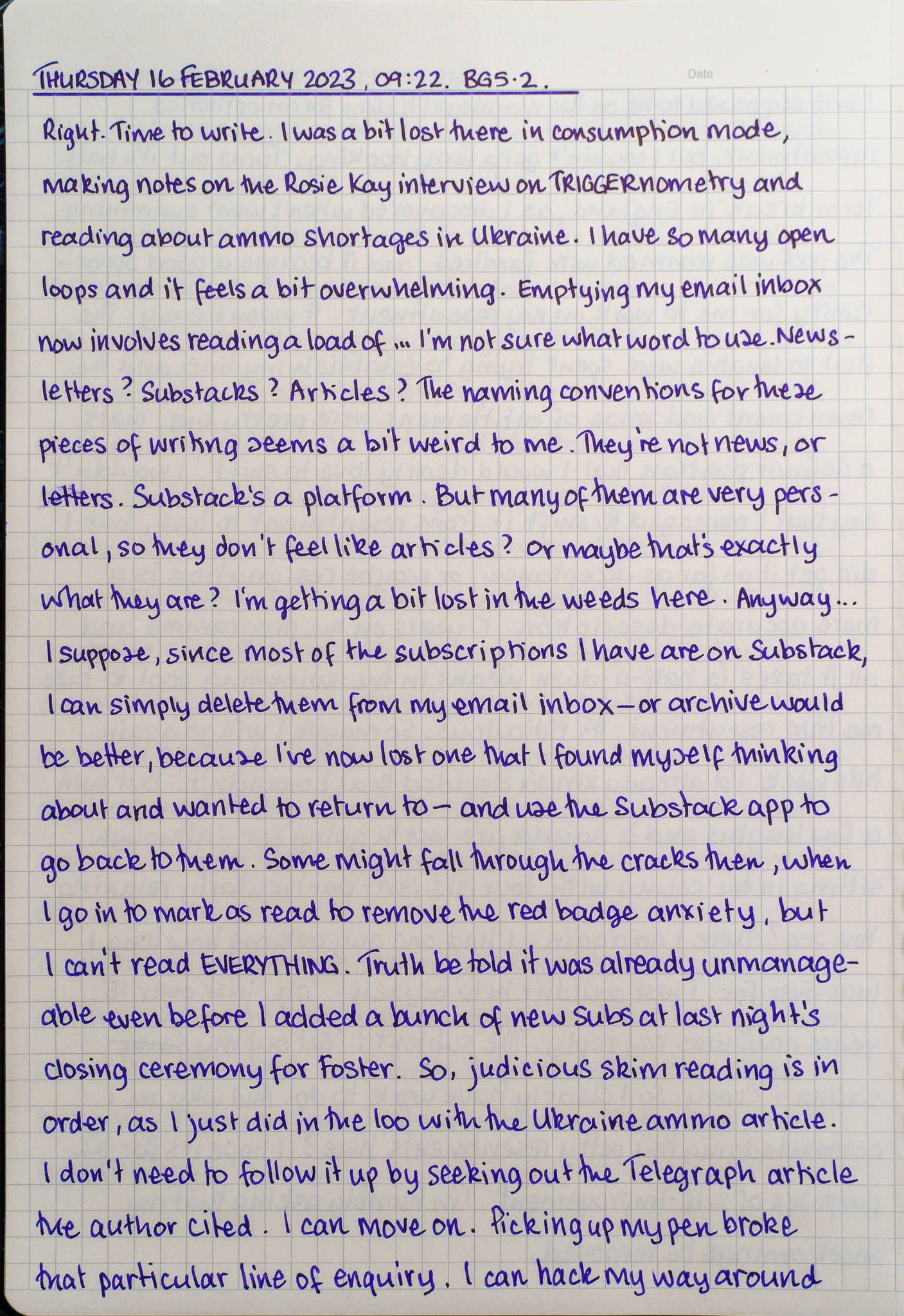 I reinked my TWSBI Diamond 580 on page 2 of today's writing and it came out much wetter after the refill. Just one of those TWSBI things, I guess. Annoying, but hey ho.