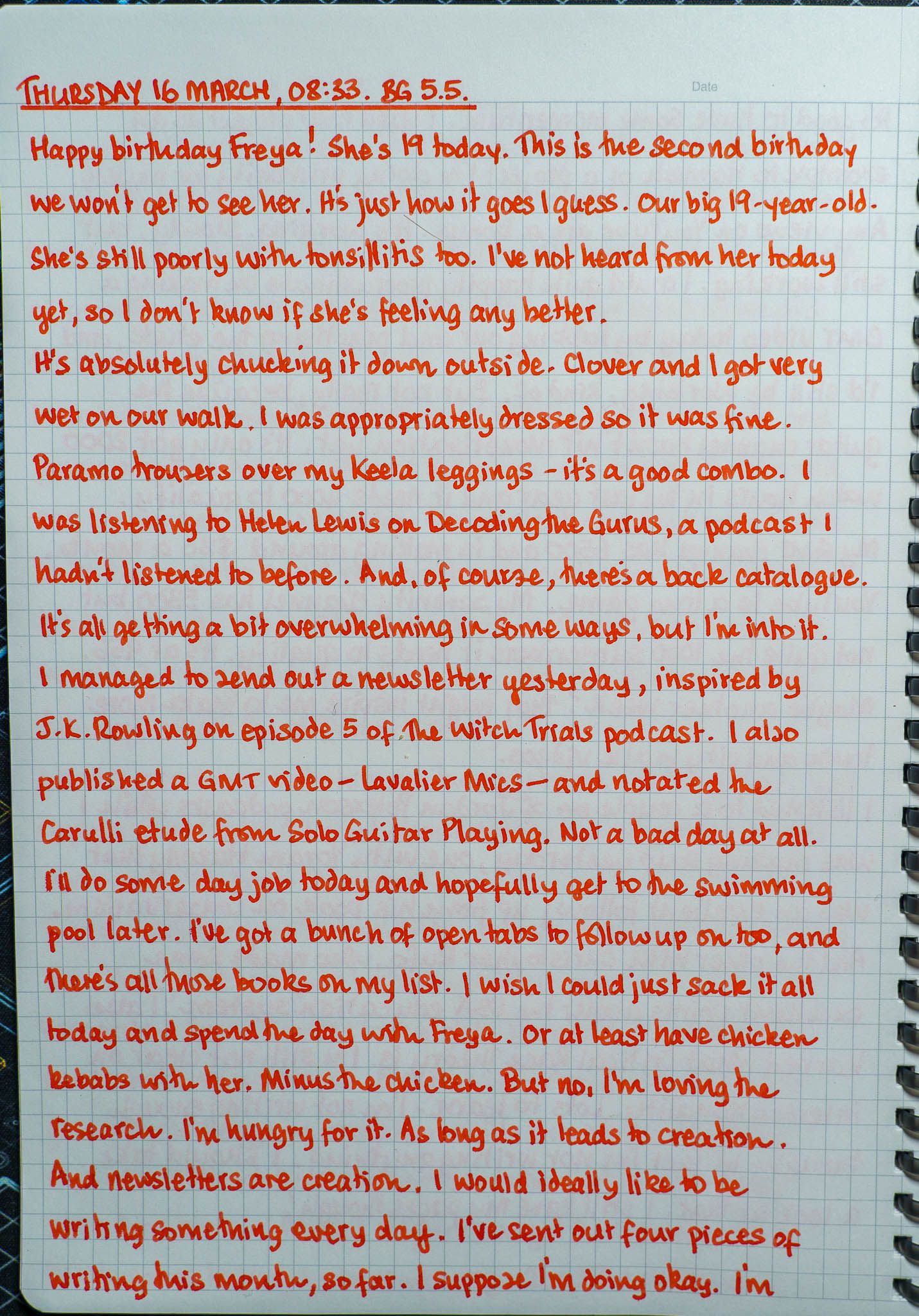 Mar 16, 2023 1 min read morning pages Morning Pages | 16 March 2023 Happy 19th birthday Freya! Cams Campbell LinksSoft Girl PlaylistFisted by FoucaultLavalier Mics (GMT Video)dodie concert, 20 September 2021