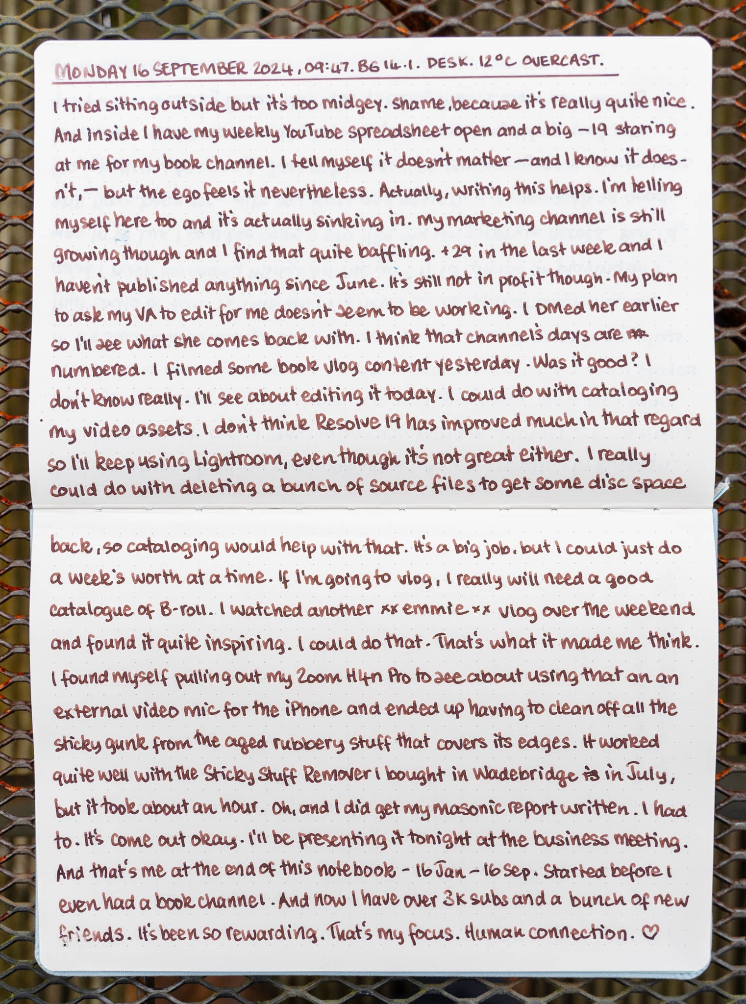 Outside, inside, back outside. Bloody midges! And it's the last page of my Pebble Cosmo Hardcover Notebook A5 - Light Blue notebook.