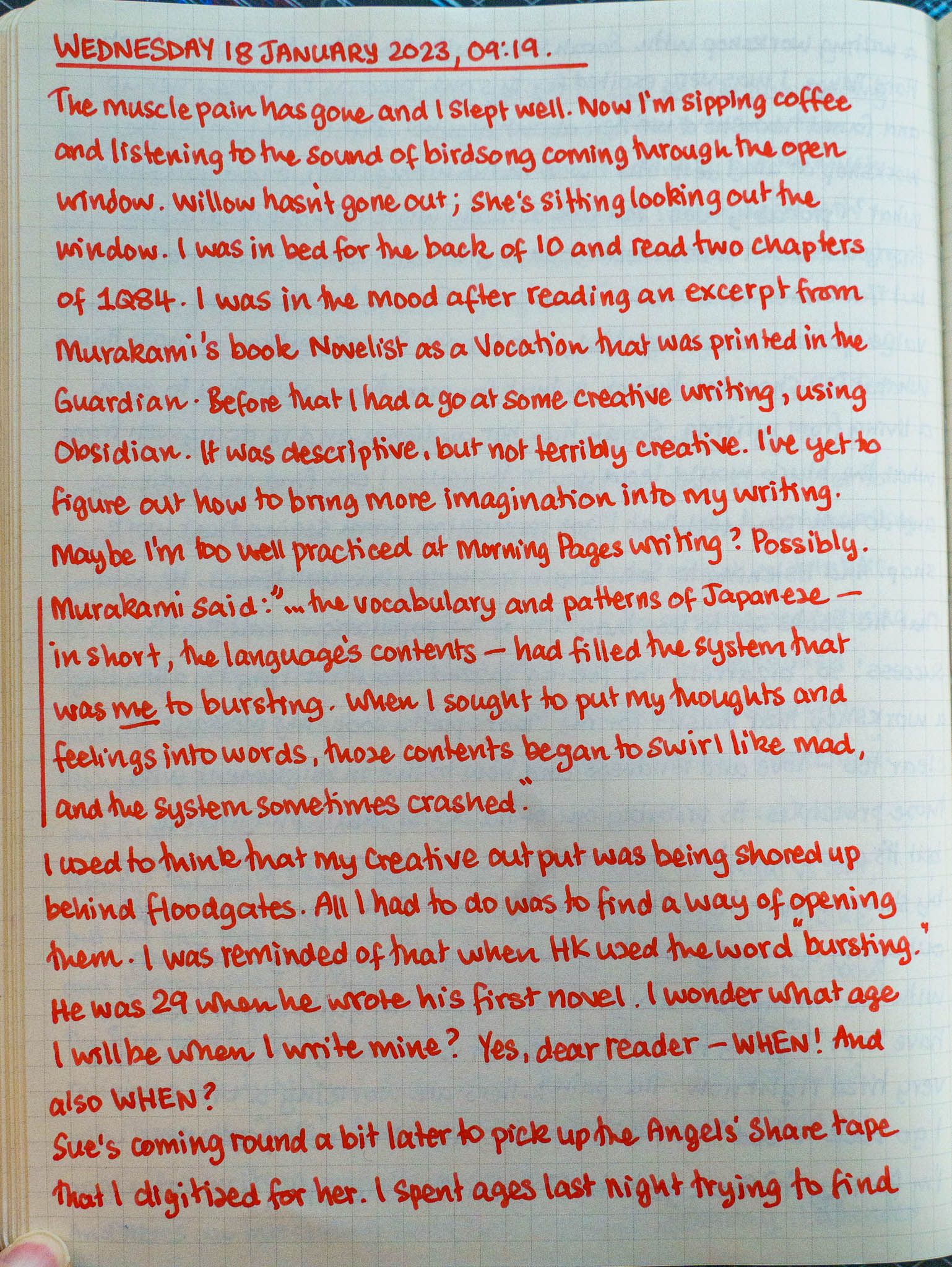 Jan 18, 2023 1 min read morning pages Morning Pages | 18 January 2023 Contents swirling like mad? I wish! Cams Campbell LinksMurakami article in The Guardian