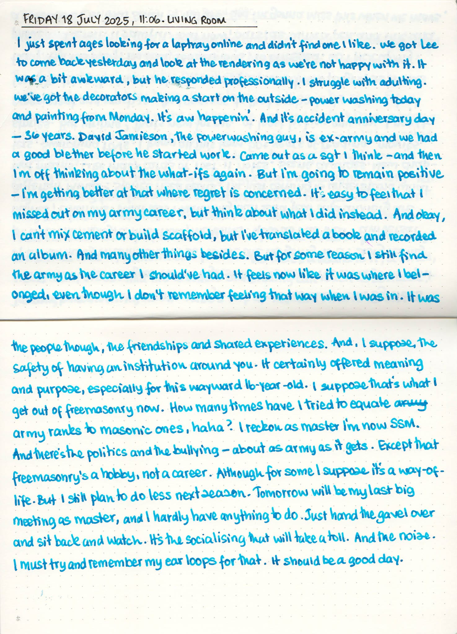 I'm back to thinking about what-ifs again after a chat with a workman who'd trained at the same place I did. If I hadn't been knocked off a cliff 36 years ago... but no, I am where I am and who I am. That's all right, intit?