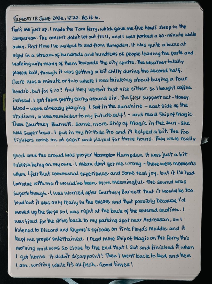 Jun 18, 2024 1 min read Morning Pages | 18 June 2024 Cams Campbell Writing from my phone because my home Internet is down. Foo Fighters were awesome!