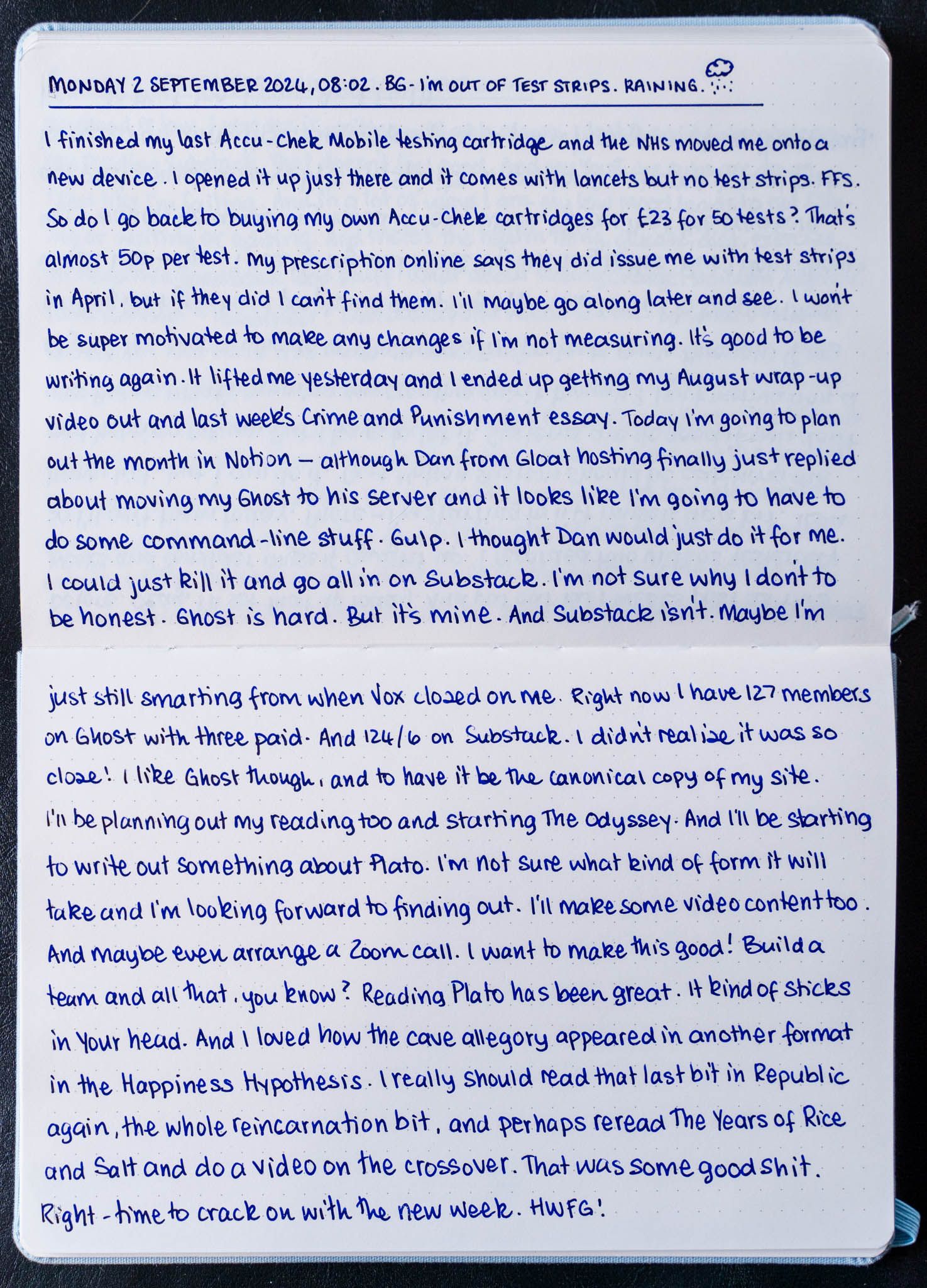 Setting up my Monday for a good week by writing first thing. I’d forgotten that I’d loaded up my black Cross ATX with Bilberry ink. That was a nice surprise.