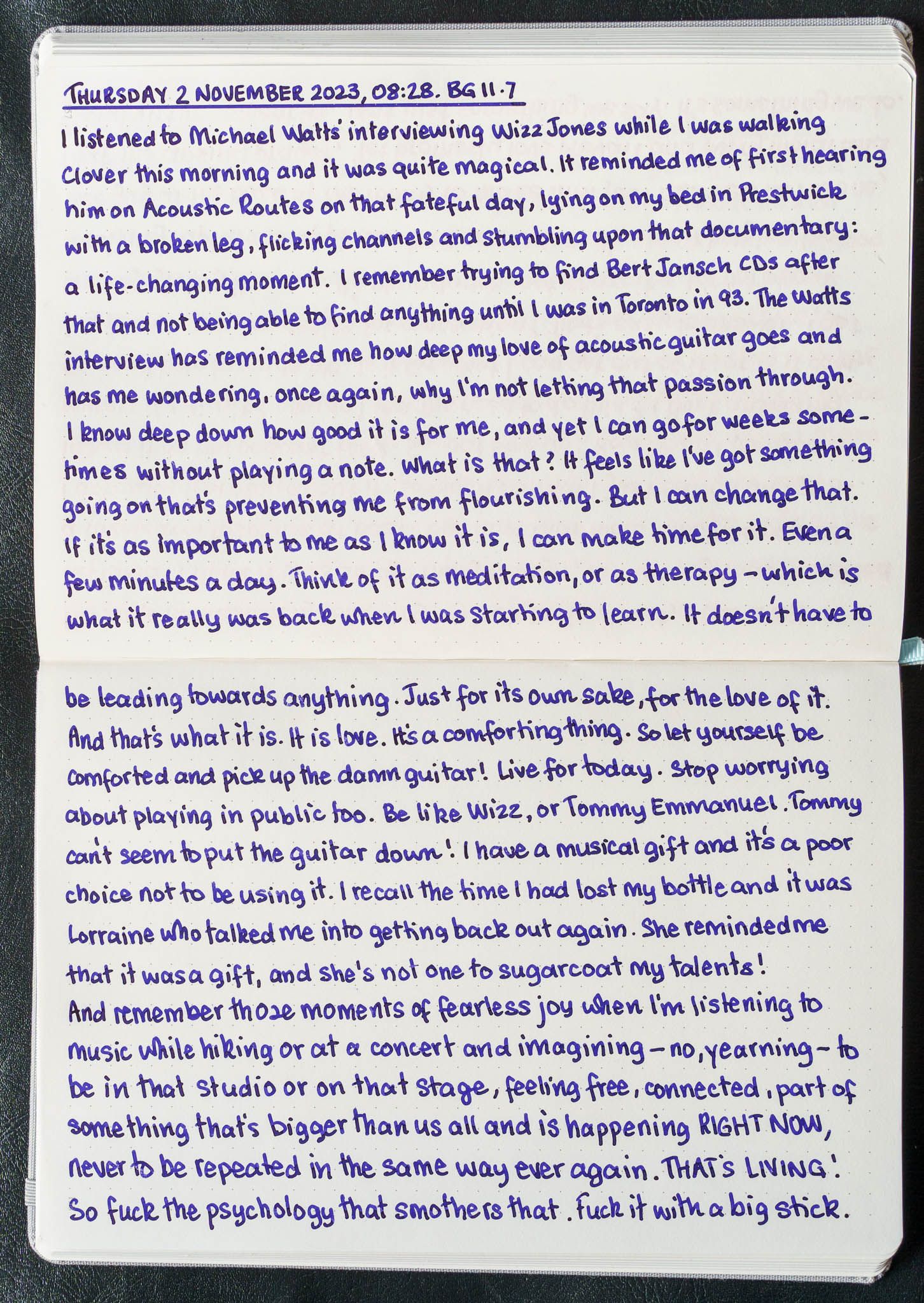 I'm pondering my love of acoustic guitar this morning on the back of having listened to a wonderful interview with Wizz Jones.