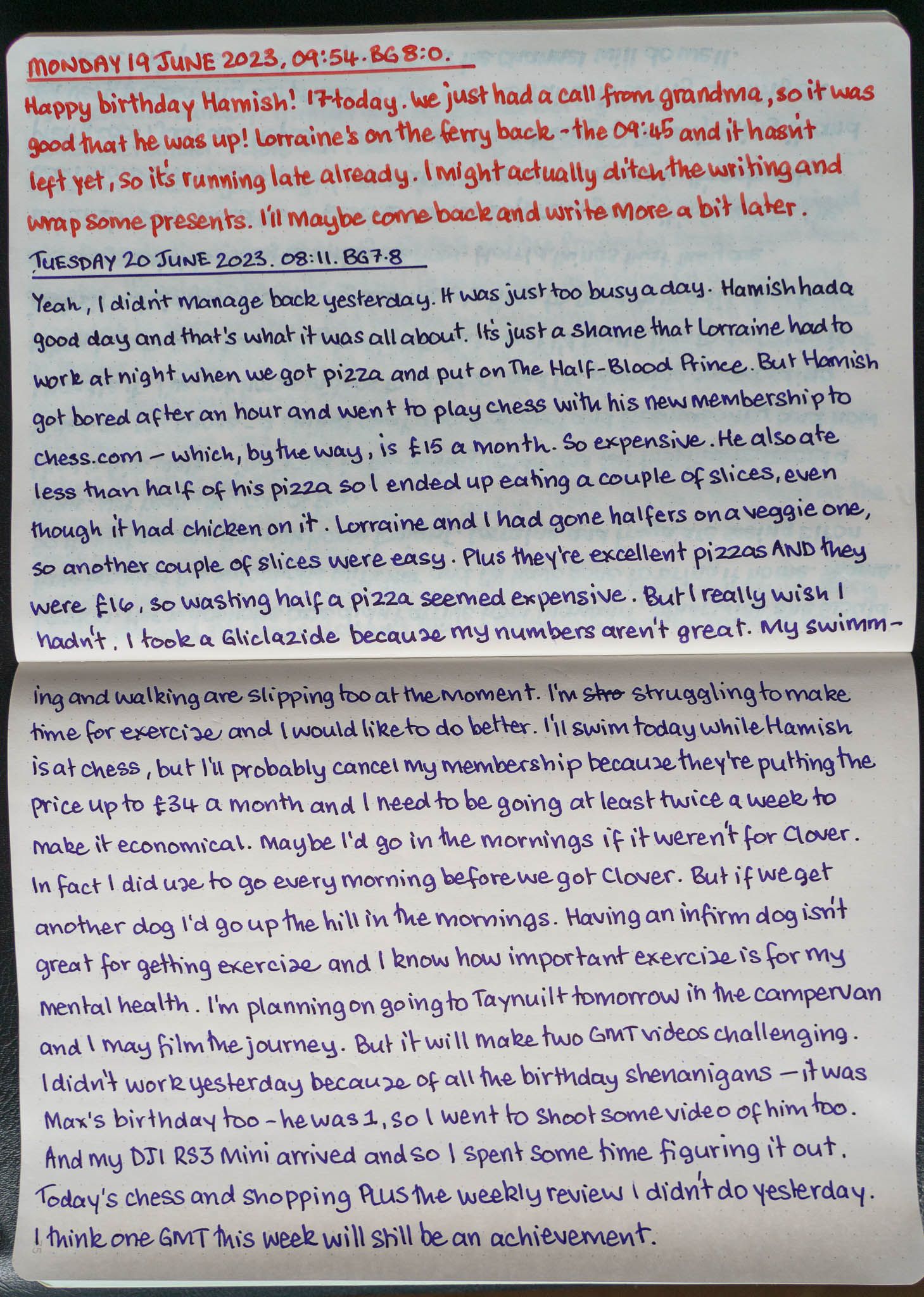 Jun 20, 2023 1 min read morning pages Morning Pages | 20 June 2023 Birthdays Cams Campbell Including a short para that I wrote yesterday before bailing to go and wrap some birthday presents for Hamish. BirthdaysHamish is 17Max is 1