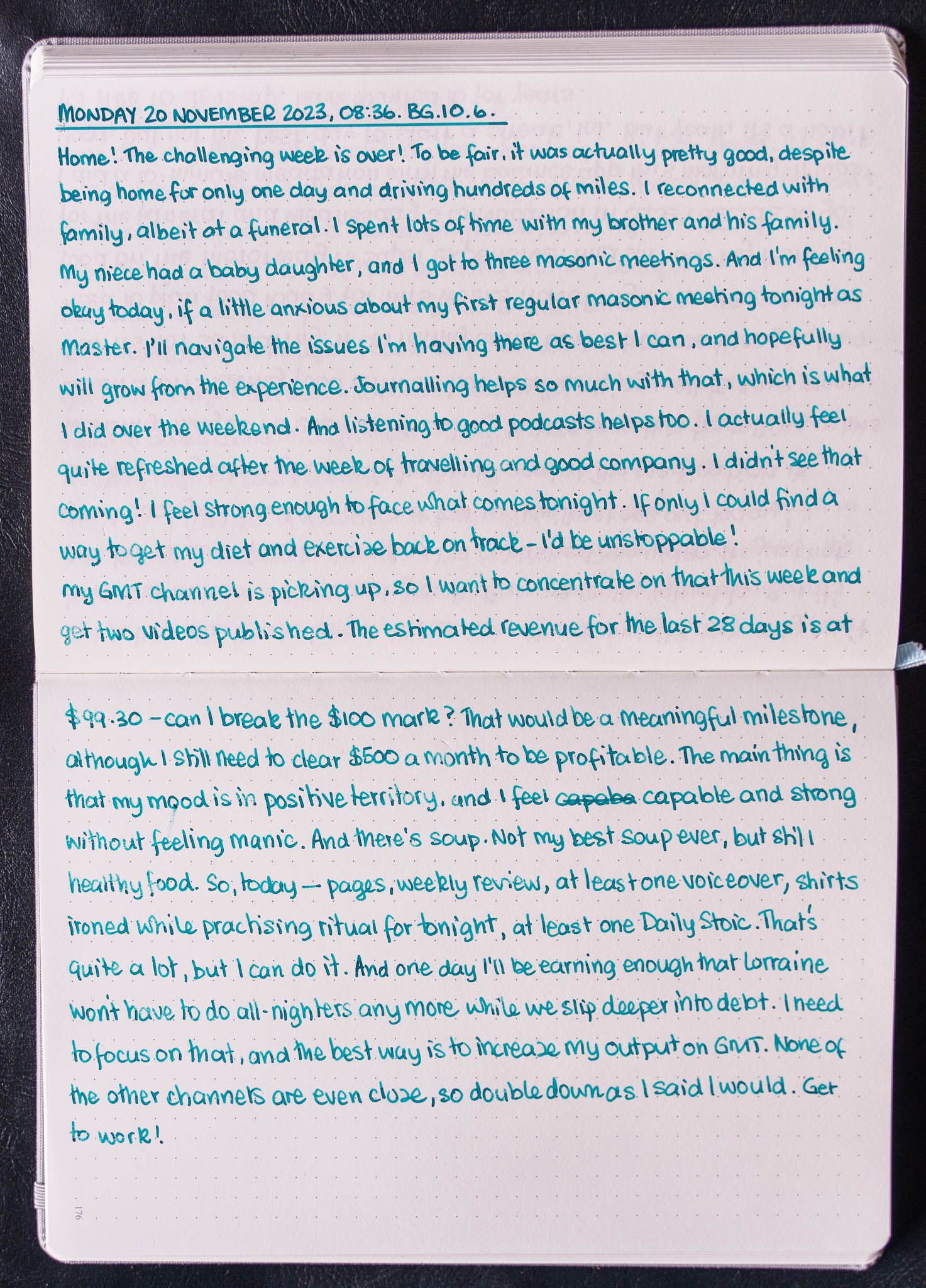It's made me feel strong enough to deal with the challenges I'm facing, including one that I wrote about in my pages over the weekend. I've posted those pages behind the paywall in case you're interested in reading about the issue and how I'm using the tools of AA and Freemasonry to deal with it.