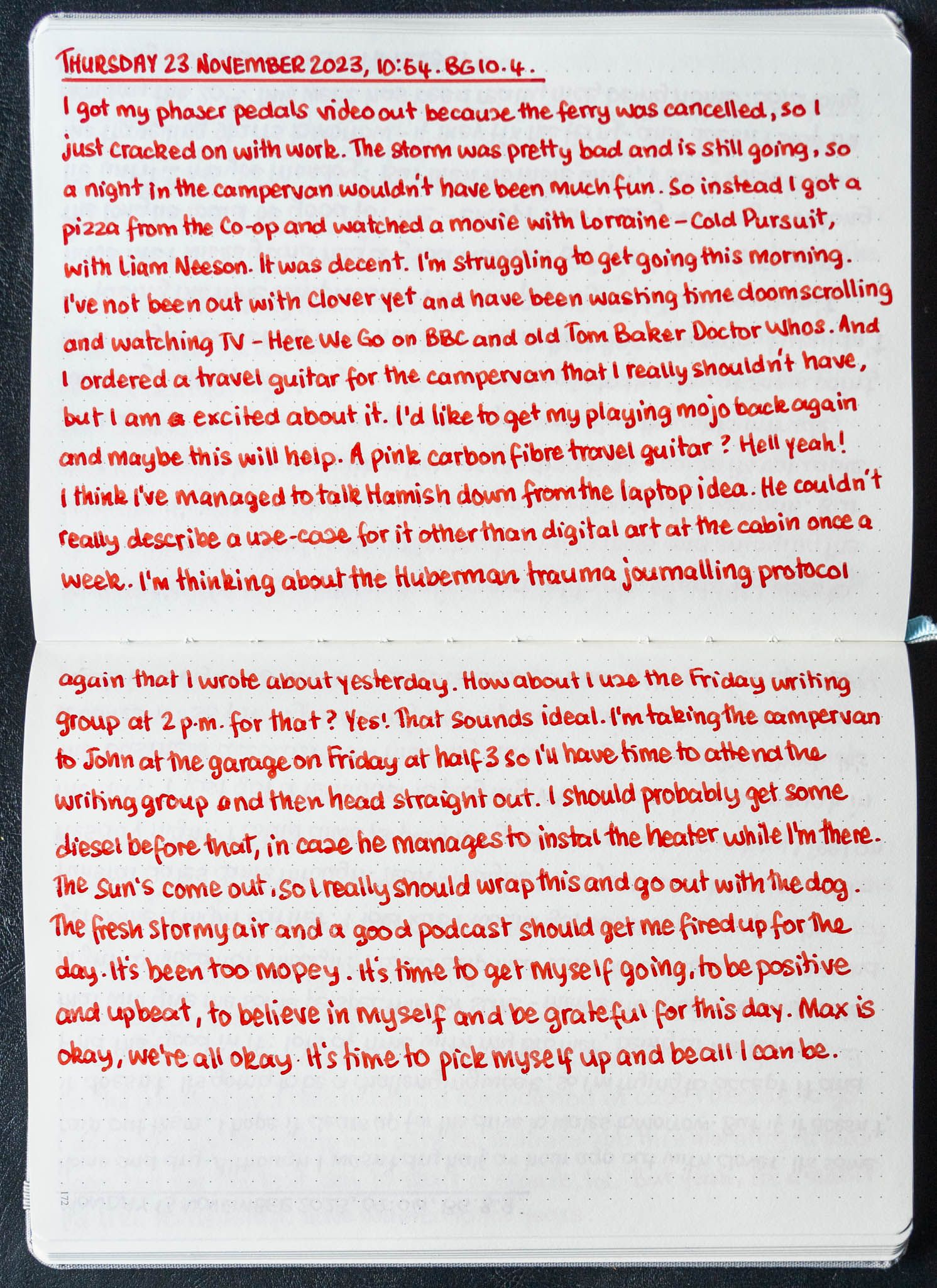But I'm here now. I got my pages written and walked Clover in the storm. It was actually pretty nice, and I managed to dodge the rain as well. And, of course, listening to Impact Theory always helps to motivate me and move me forward. The current episode is an absolute banger about health, with Gary Brecka. I will be following up on some of the advice for sure. (Link)