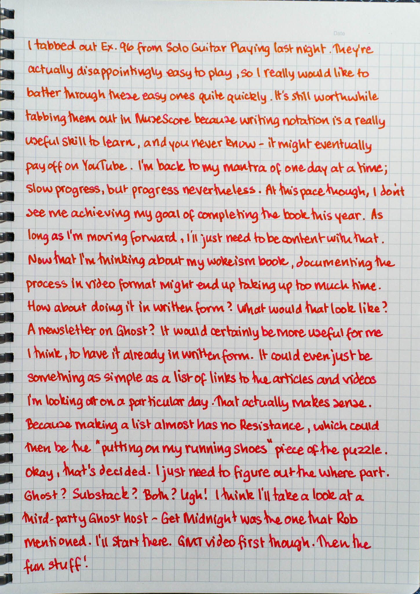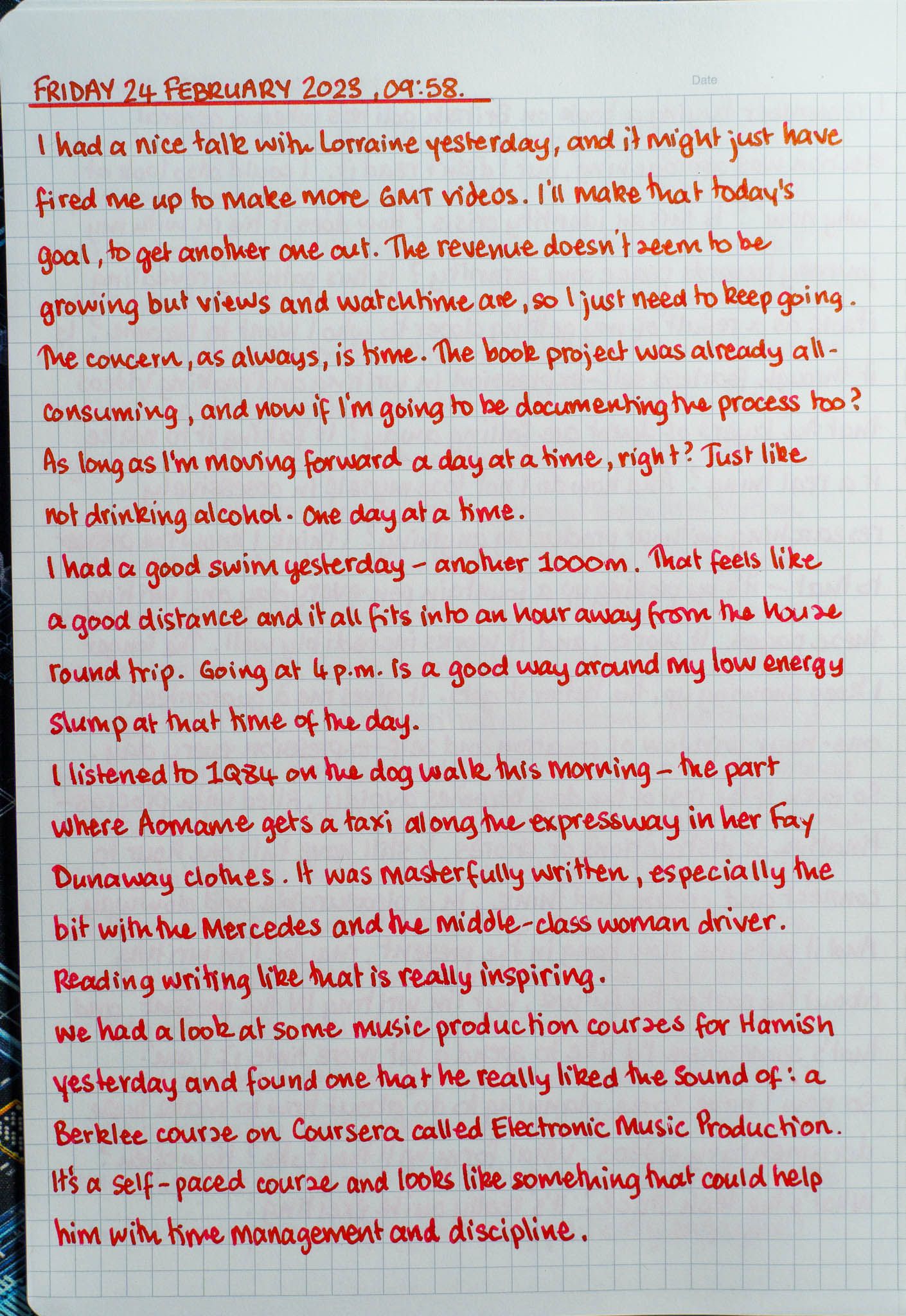 Feb 24, 2023 1 min read morning pages Morning Pages | 24 February 2023 As long as I'm moving forward a day at a time, right? Cams Campbell LinksMusic Production CourseSolo Guitar Playing VideosGetMidnight Ghost Hosting