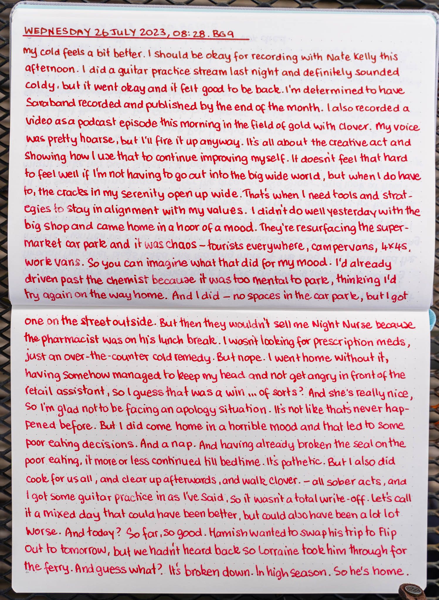 I'm off to a good start today. My cold is a bit better, the sun is shining, I recorded a video podcast when I was out with Clover and I got to do my writing on the porch. I examined some behaviour yesterday of which I'm not proud. I can do better. I will do better.