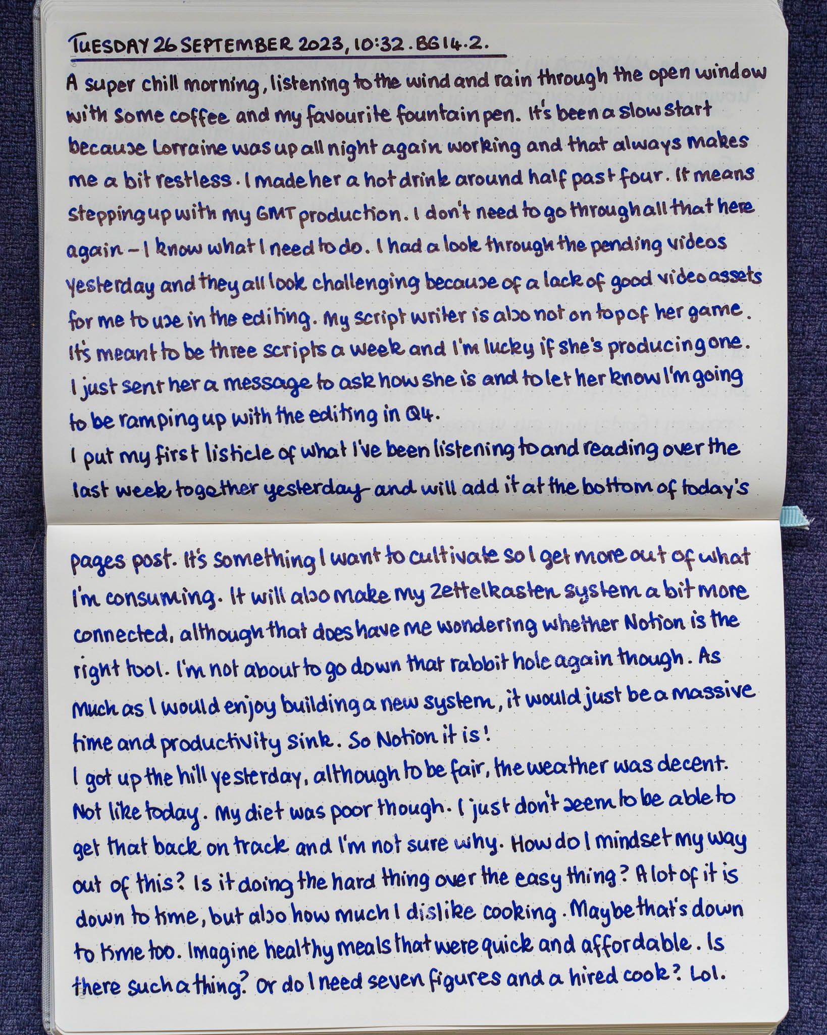 Today's pages were written with the Waldmann Edelfeder broad and Diamine Bilberry ink.