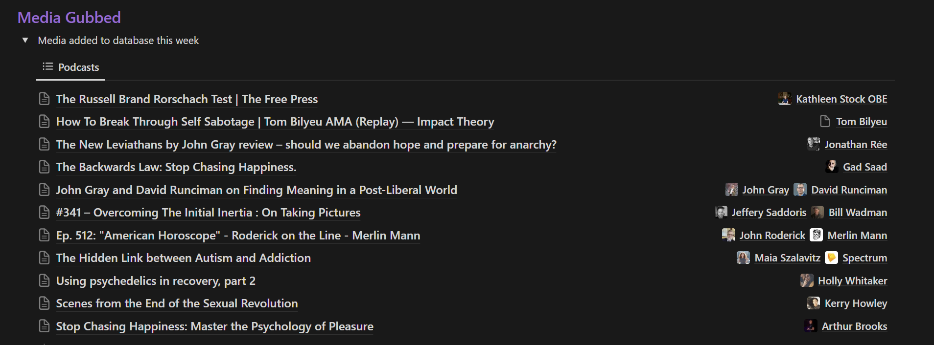 I thought I wasn't familiar with Arthur Brooks when I was listening to this, right up until they mentioned his book, From Strength to Strength. 'Hang on a minute - that sounds familiar,' I thought. And I was right. I read it last year. So, you see? This is why I want to start taking notes on what I'm listening to.