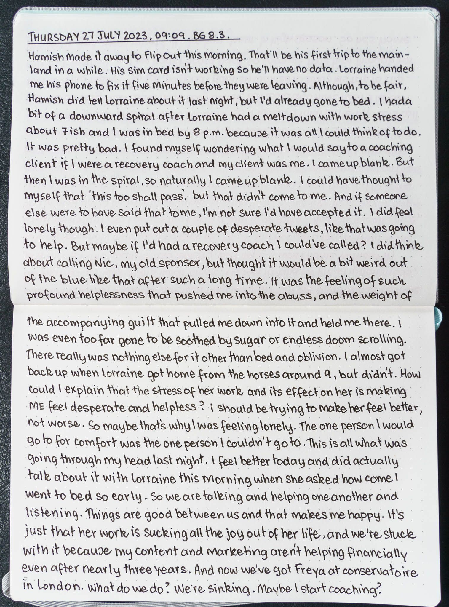 The final line is an interesting one that will require a lot of thought. I think I would be a good recovery coach. In fact, I'm convinced of it. That means I have to consider how to deal with such things are impostor syndrome (yes, that again!) and certification. The second part means spending money that we don't have and that's going to be tricky.
