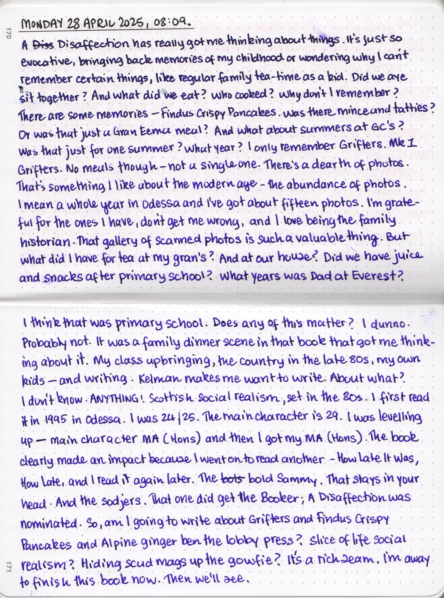 How did I get from reading A Disaffection to writing about Findus Crispy Pancakes and Raleigh Grifters?