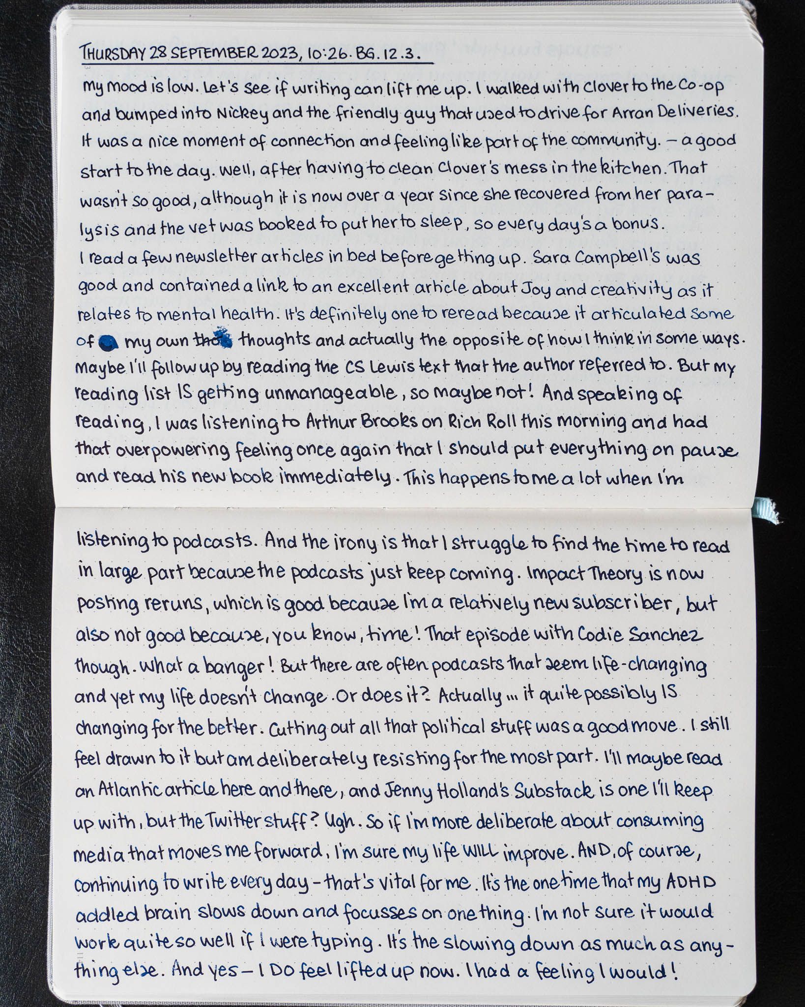 Another writing session where I was able to move from a low mood to a positive mood. Ah, morning pages. How I love you.