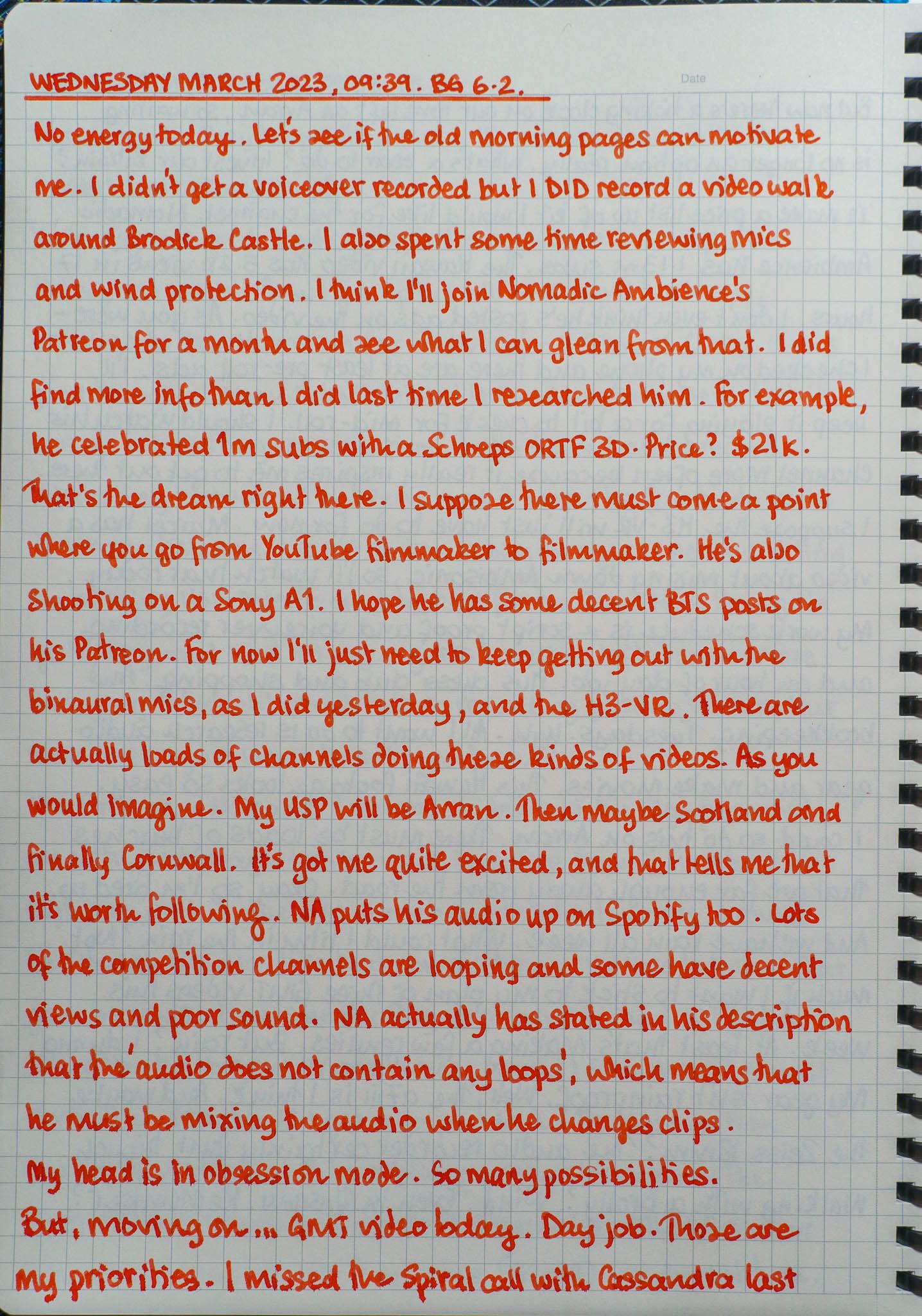 Mar 29, 2023 1 min read morning pages Morning Pages | 29 March 2023 The next chapter of our lives is getting closer. Cams Campbell LinksWalk around Brodick Country ParkNomadic Ambience on YouTube