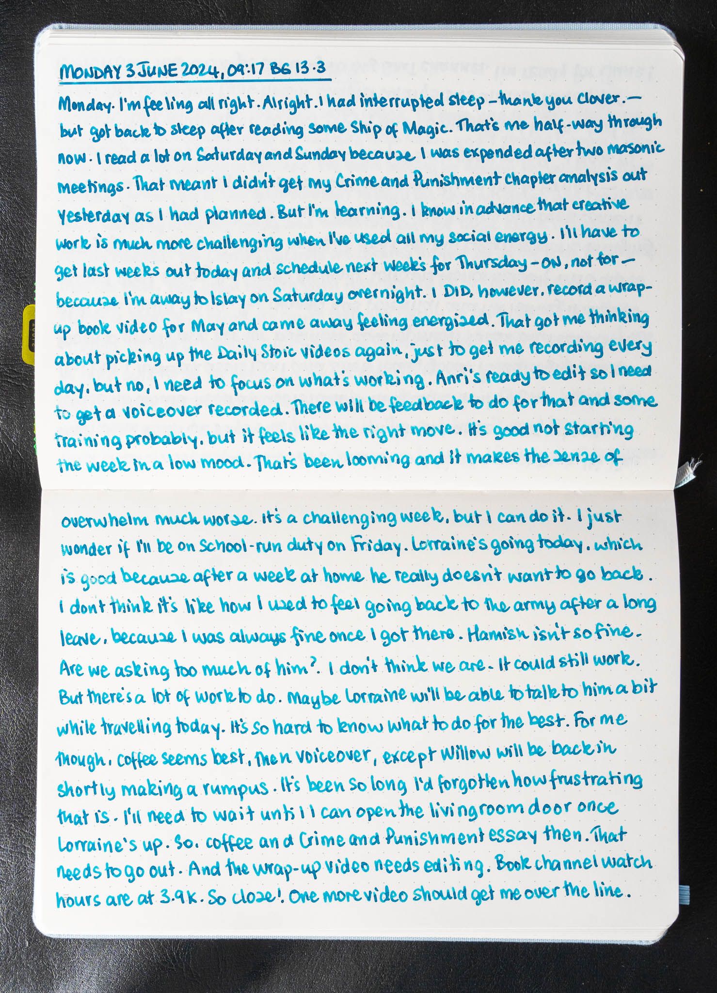 I'm not feeling low and that's a very good thing. Just getting my day going with habits and routines. And now Willow's back in and miaowing loudly beside me, so recording a voiceover is, as I suspected, not on the cards until Lorraine gets up. So, Crime and Punishment essay it is, then!