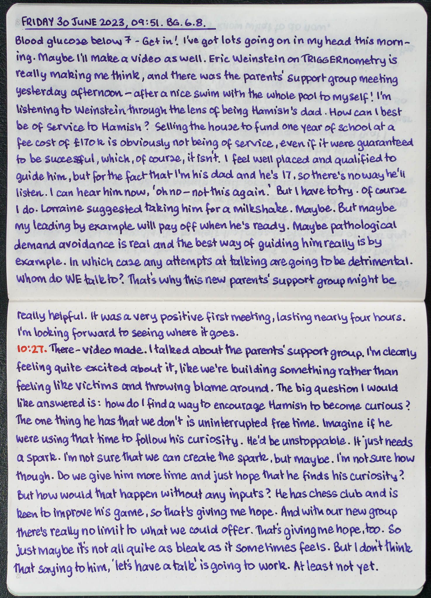 In today's pages I ended up discussing the predicament we find ourselves in with regard to our son's education, after his high school and local authority have spectacularly failed him. It's up to us now to recognise that the institutions are not going to help and figure out how to move forward in a way that will help him to reach his potential and find happiness and meaning. I go into it in a bit more detail in the video that accompanies these pages, linked below.