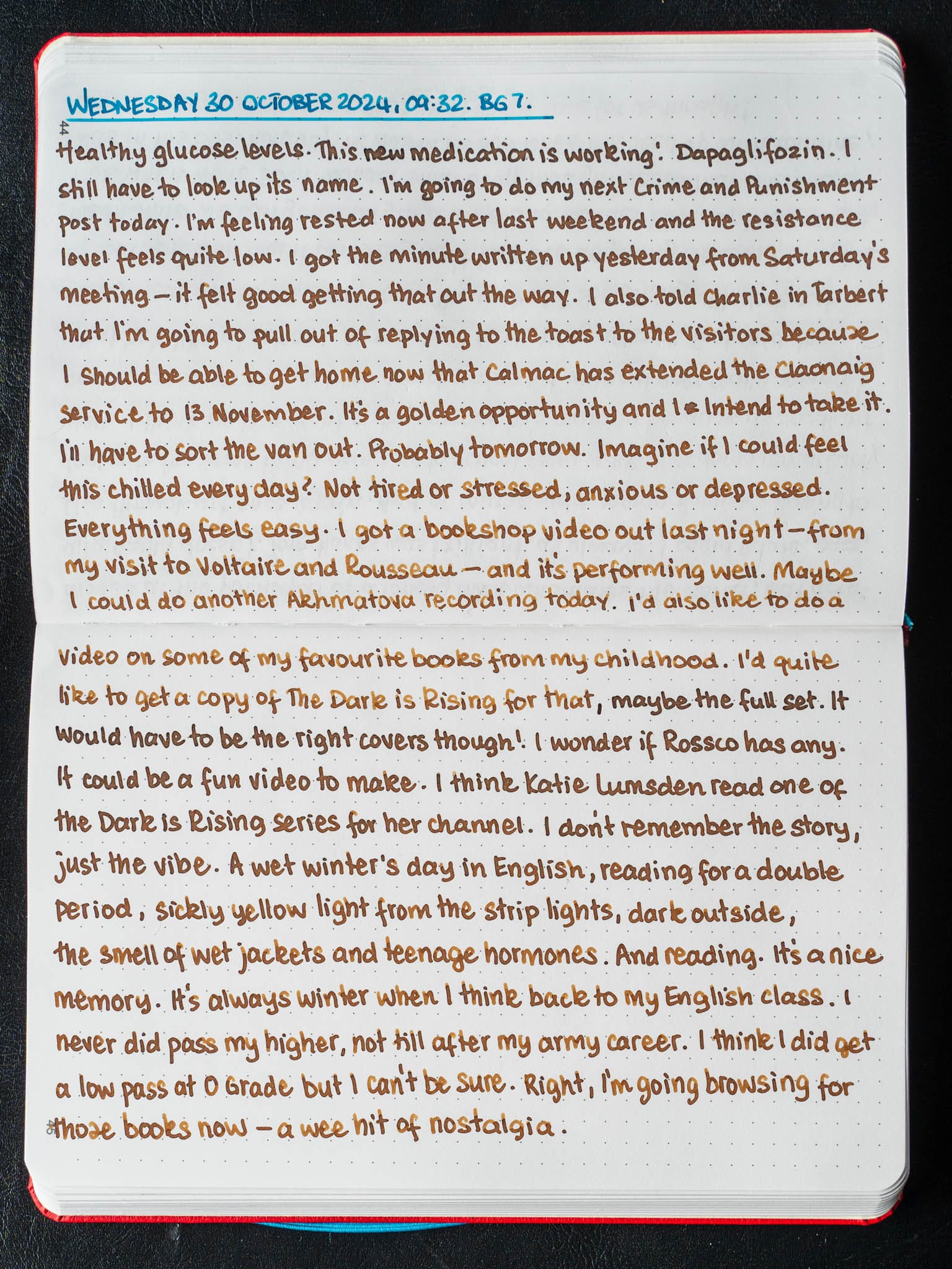 I thought yesterday that I would like to try the Diamine Desert Burst in a broad nib. So that's what I did today, and it was a really positive experience!
