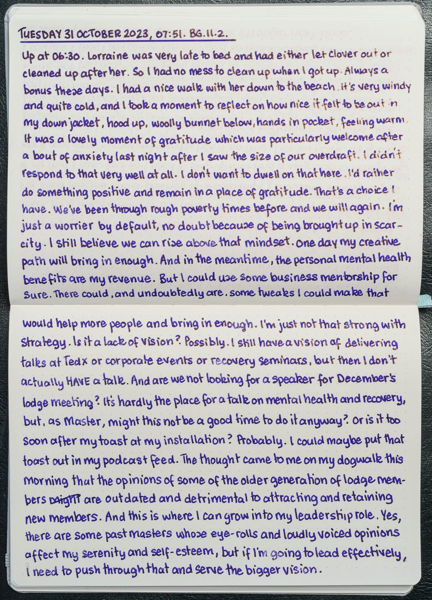 In this morning's pages, I found myself asking whether I have the courage to lead as Master of my Masonic Lodge in the way that I feel I ought to in my heart. Is it really a wise move to consider delivering a talk on my journey through alcoholism and into recovery? It feels a bit like a crossroads, although perhaps not quite, as I already broached the subject in front of a big audience at my installation. Except that I didn't speak as well as I had practised.