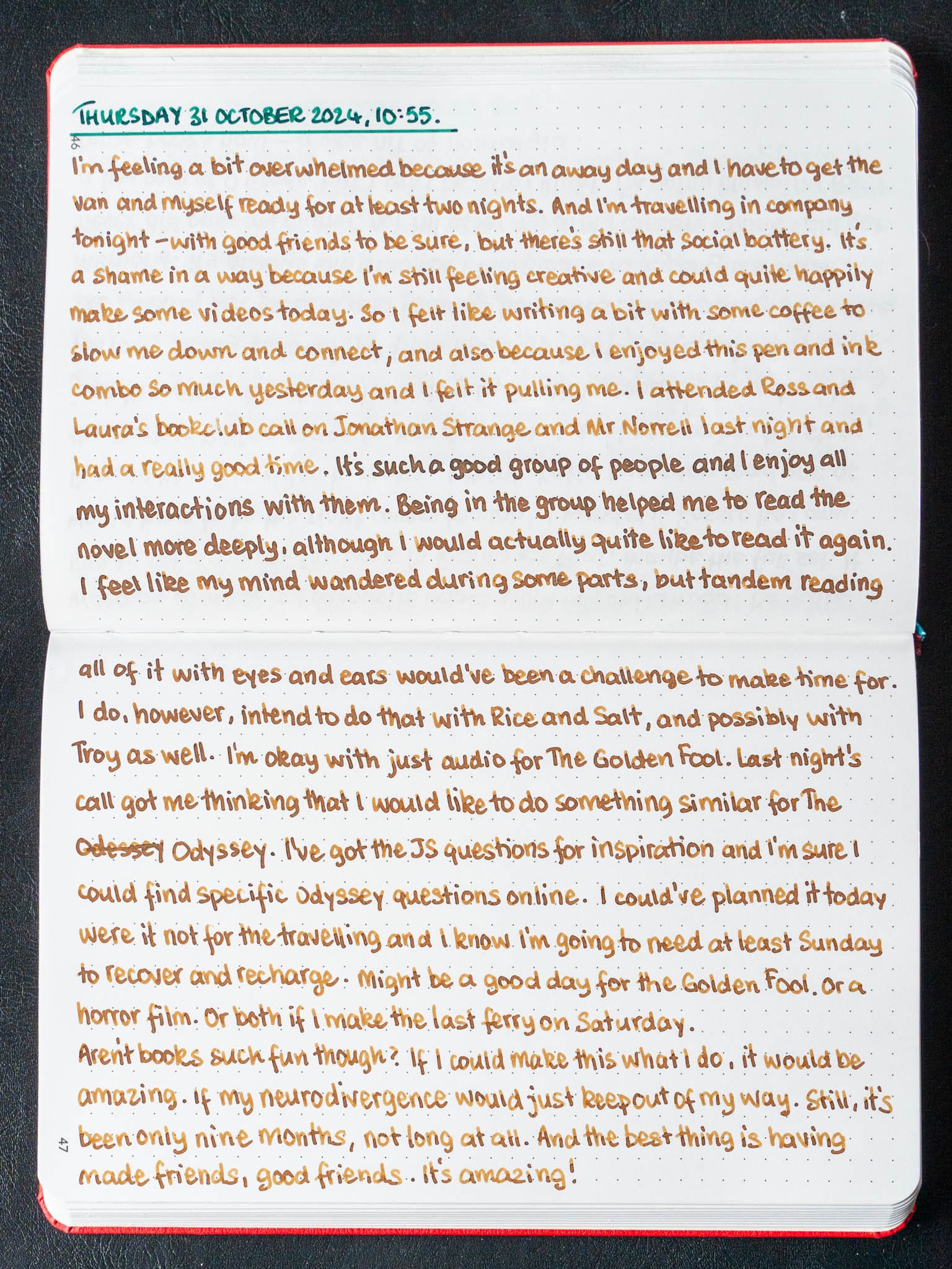 Happy Halloween! I'm finding myself drawn to the broad-nibbed TWSBI Classic with the Diamine Desert Burst again. What a combo! A perfect autumn colour.