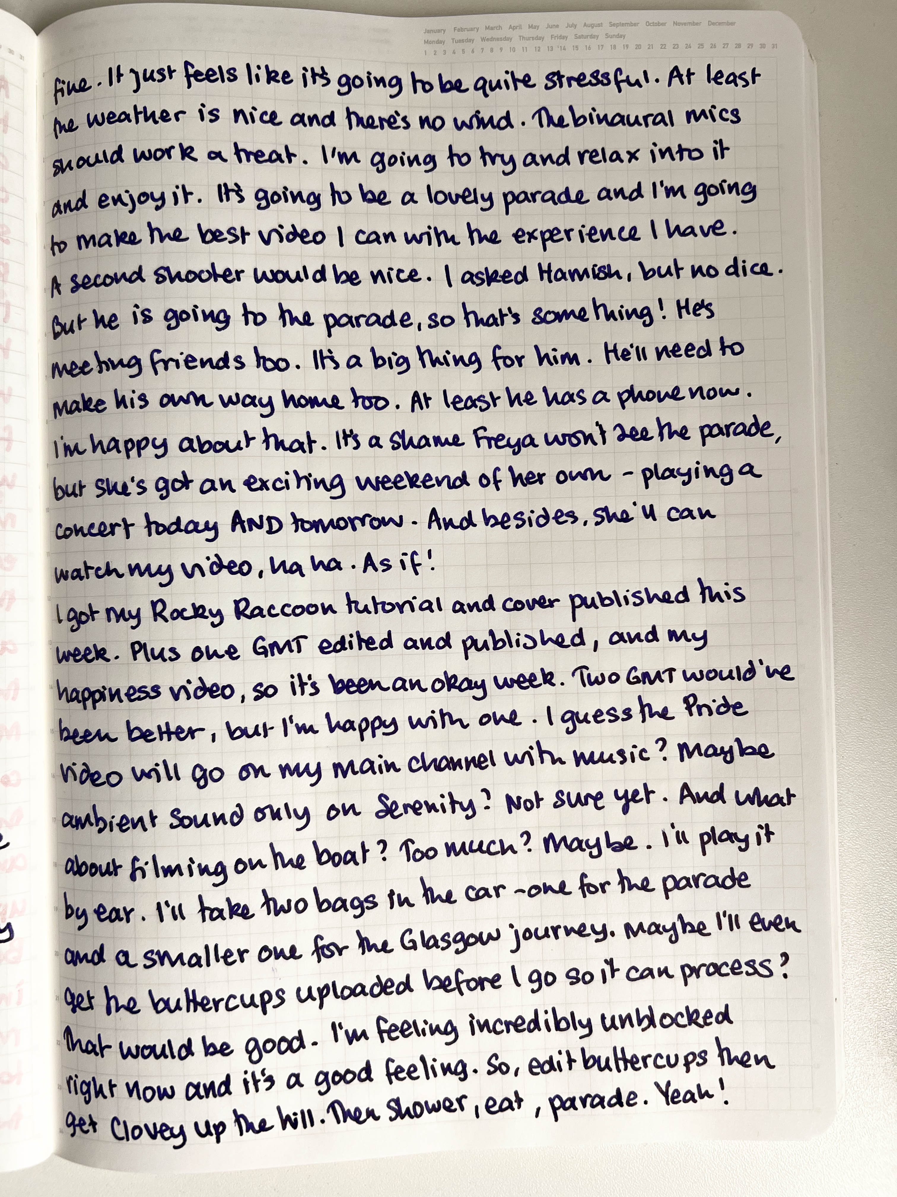 I'm grateful for waking up at 05:55 so I can get all my things done before going out to film Arran's first Pride parade at 11.