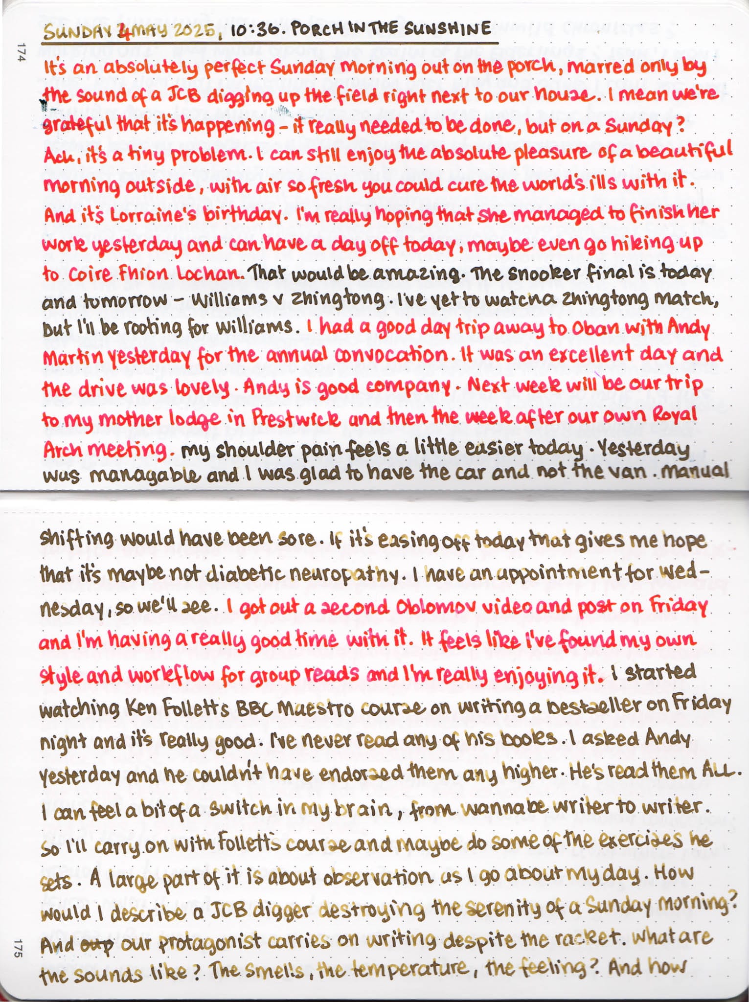 A nice morning out on the porch, except for the racket of the JCB digger in the field next to our house. I overcame!