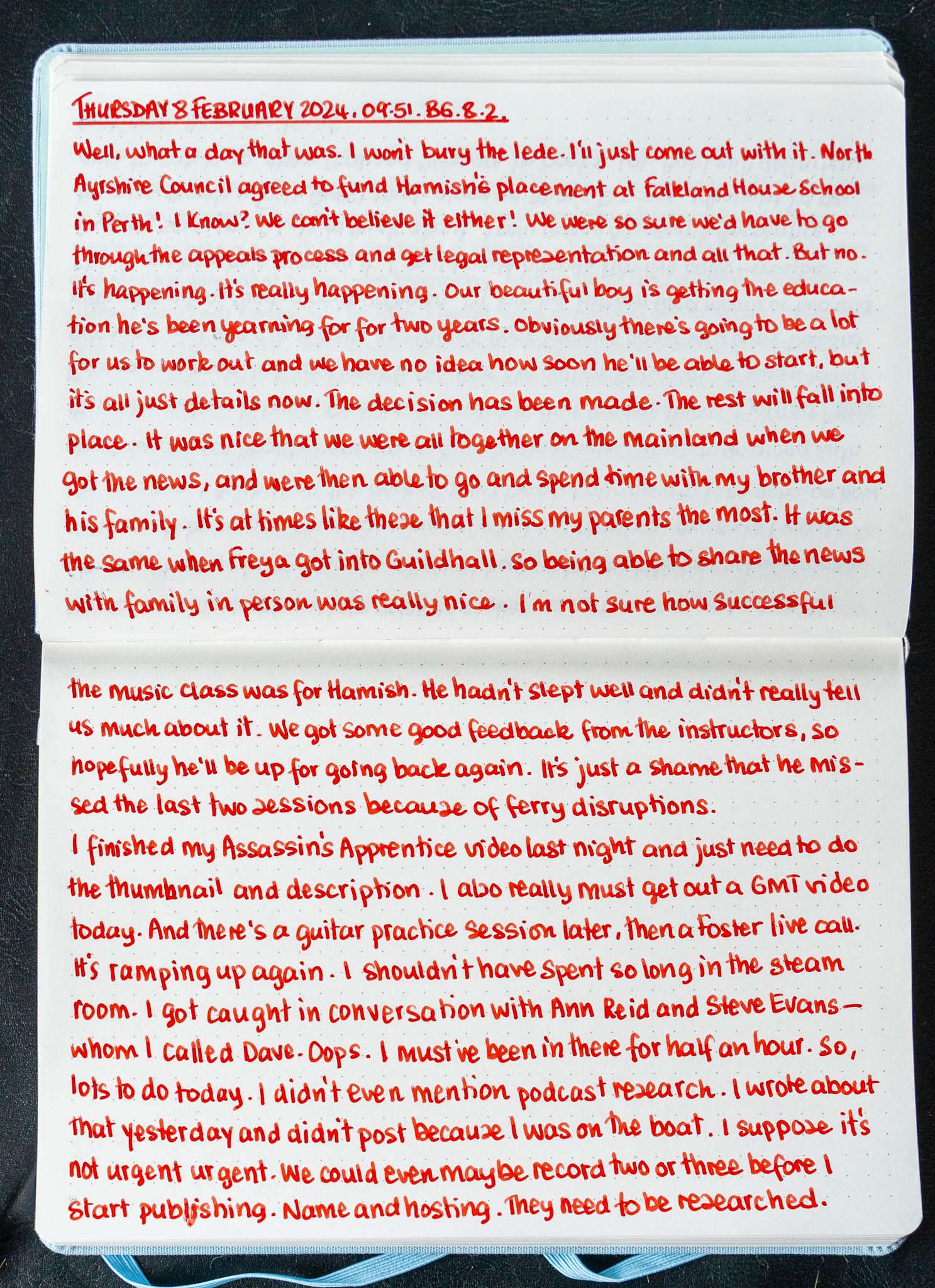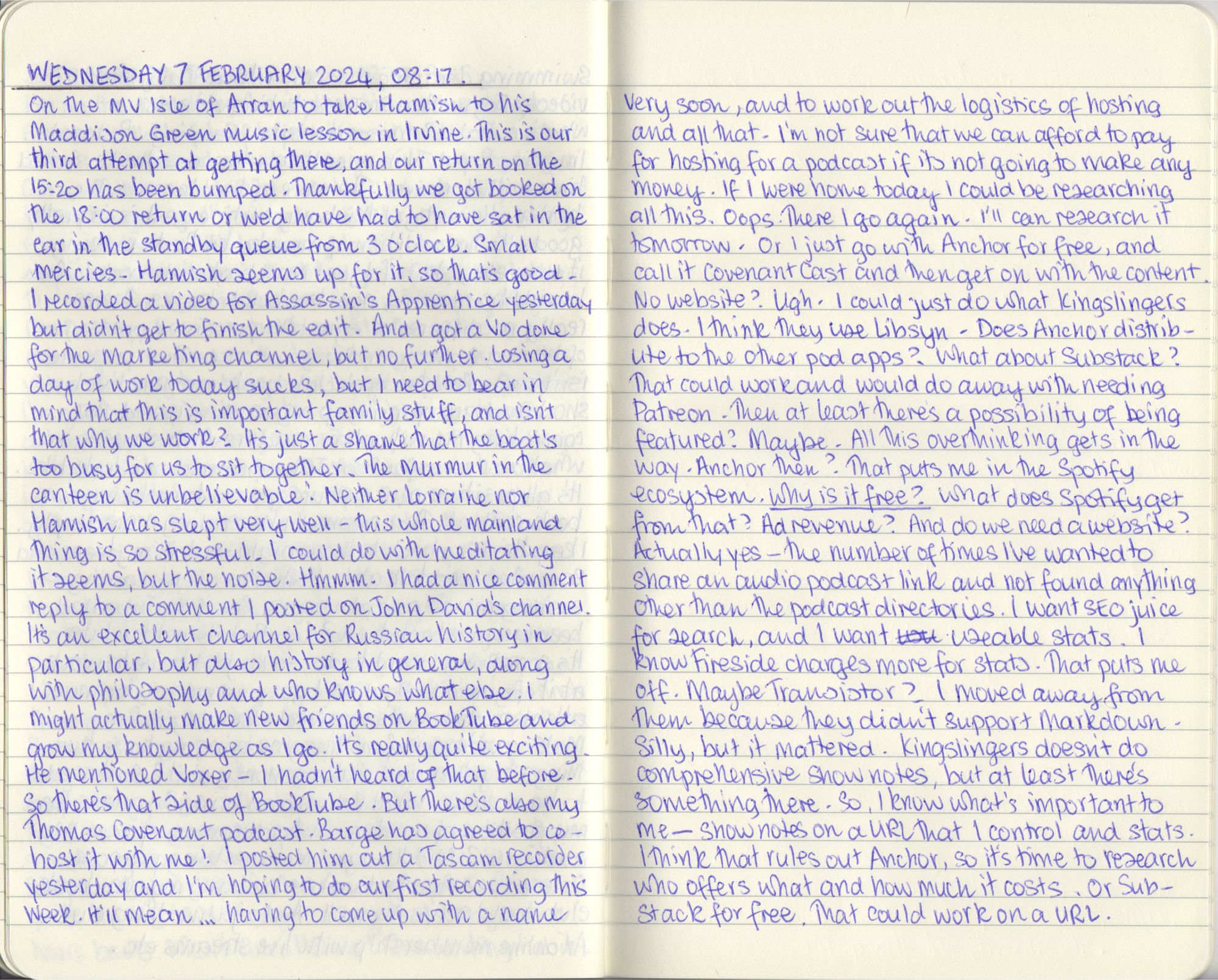 I didn't post yesterday because I was travelling. I wasn't going to bother, but since I mentioned the new podcast I'm starting at the end of today's pages, I thought I'd include what I wrote on the boat yesterday. I wrote down some thoughts about the podcast idea, so, if you're a super fan of what I do, you might be interested in the thought process.