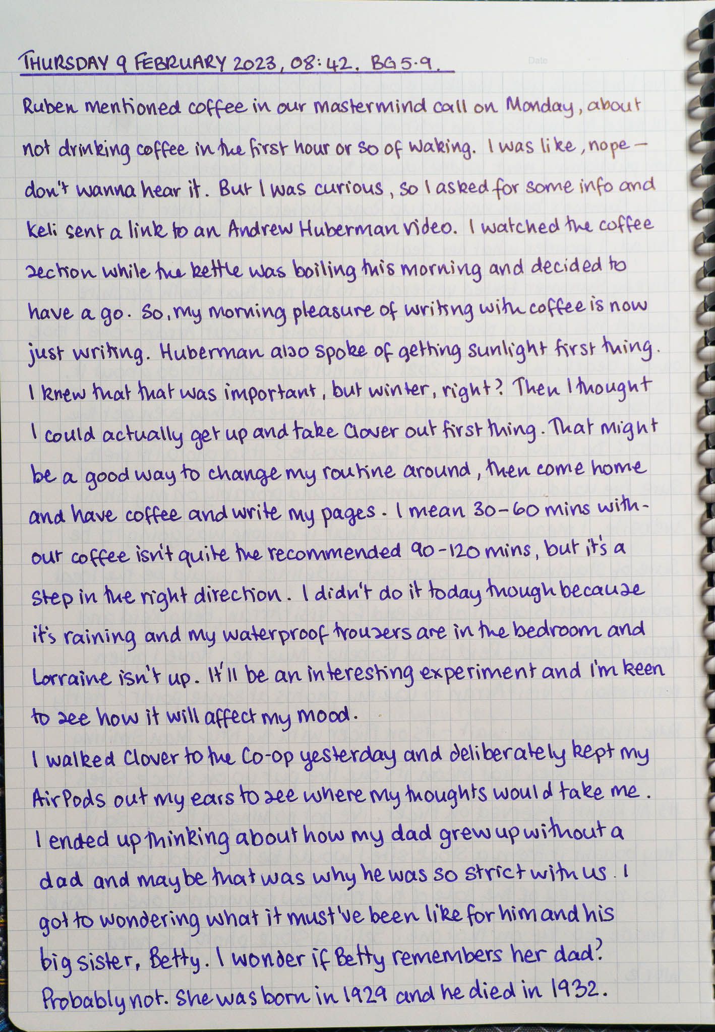 Feb 9, 2023 1 min read morning pages Morning Pages | 9 February 2023 Do thoughts such as these give me my identity? Cams Campbell LinksHuberman on coffee