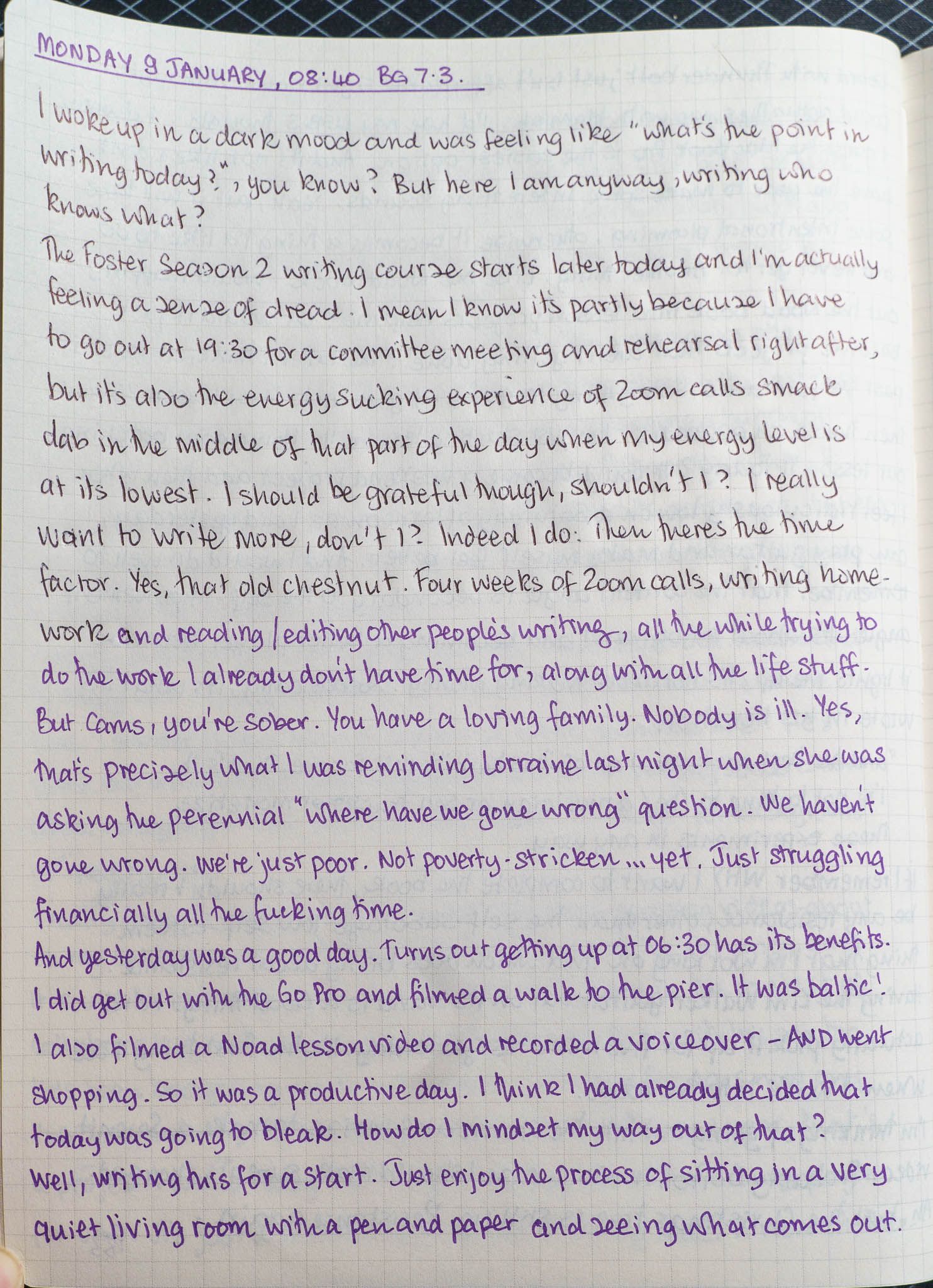 Jan 9, 2023 1 min read morning pages Morning Pages | 9 January 2023 Writing my way out of feeling bleak. Cams Campbell LinksGMT ChannelSerenity Scotland ChannelGuitar Channel