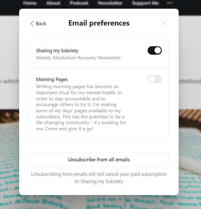 I haven't 'opted in' my current subscribers to the Morning Pages newsletter in order not to breach the expectations I set for you when you initially signed up. If it's something you would like to support, simply go into your Email preferences and move the slider across to subscribe to the Morning Pages newsletter. Thank you. 🙏🏻